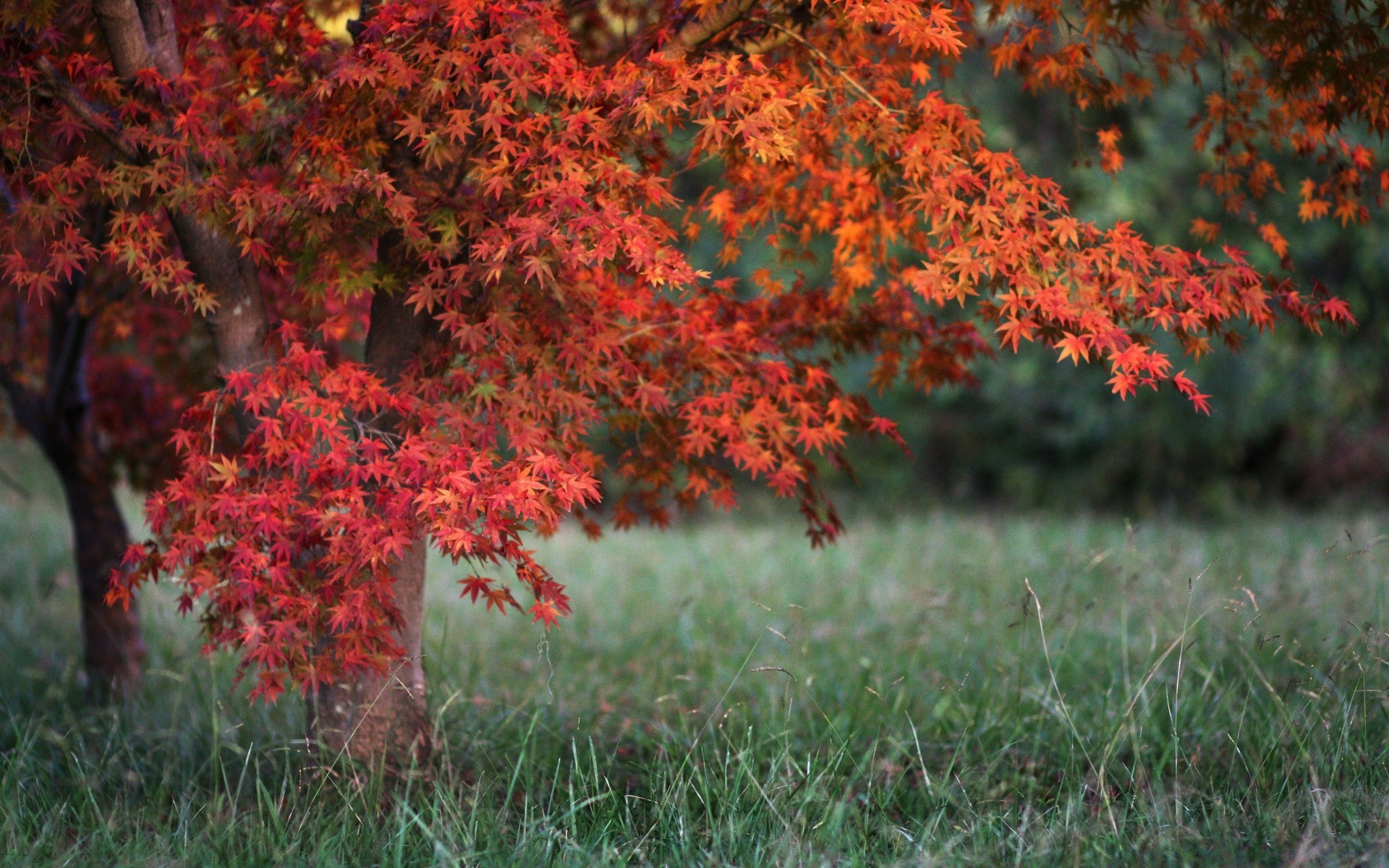 Bright contrast of red and green. autumn landscapeBright contrast of red and green. Autumn landscape