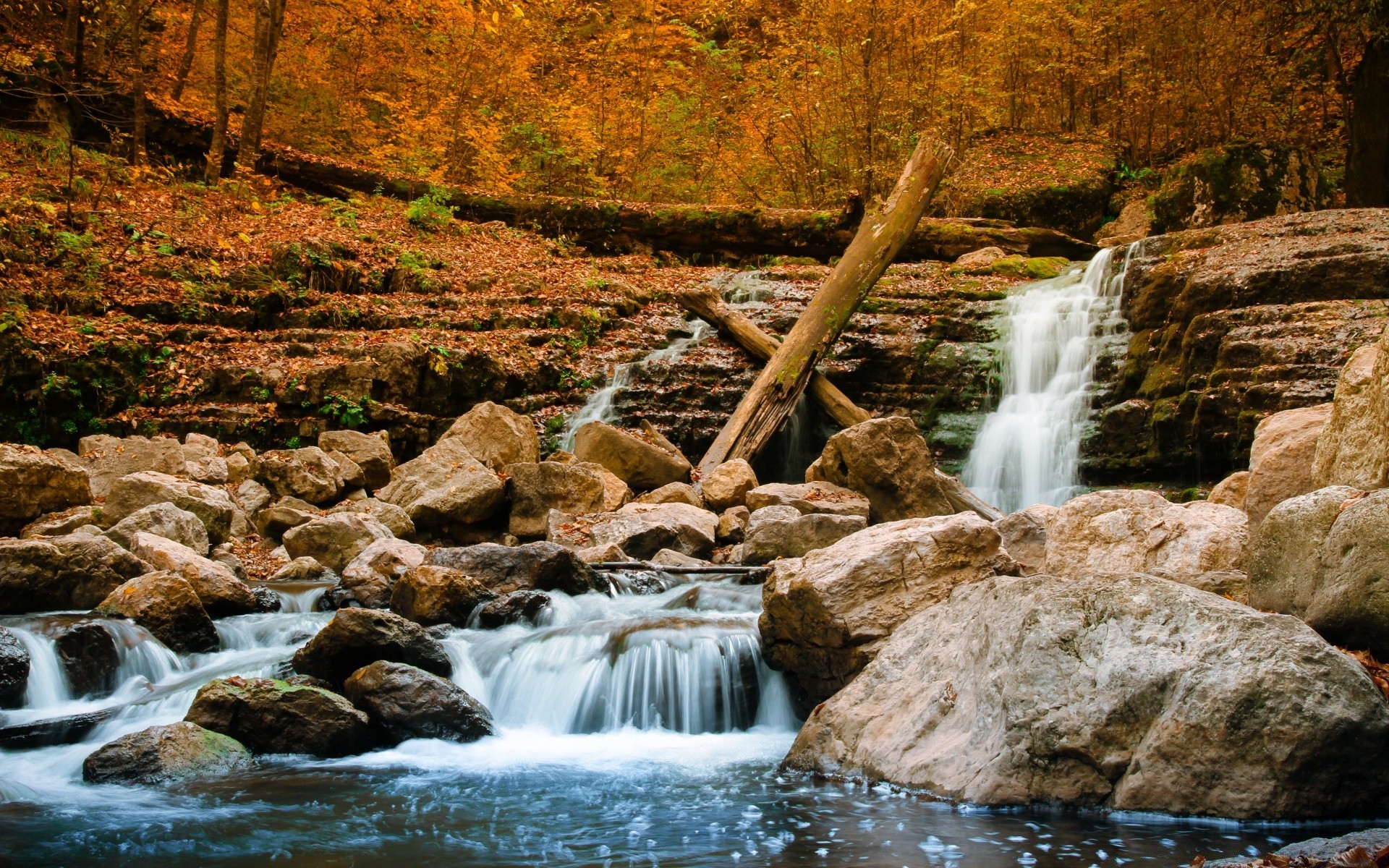 Autumn trees are crowding in the forest and talking, making noise with their foliage