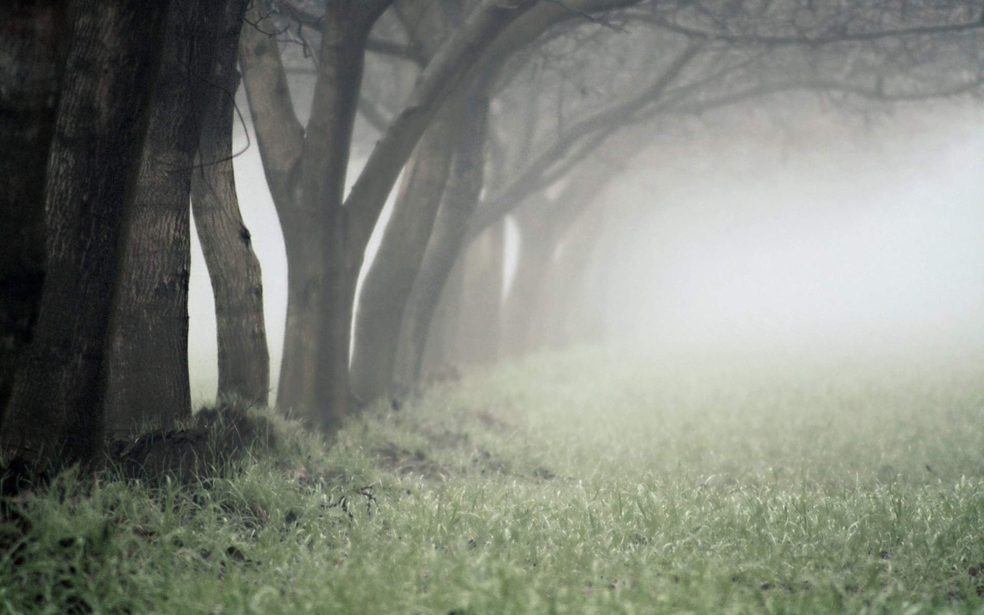 Foggy landscape in autumn against the background of treesFoggy landscape in autumn against the background of trees