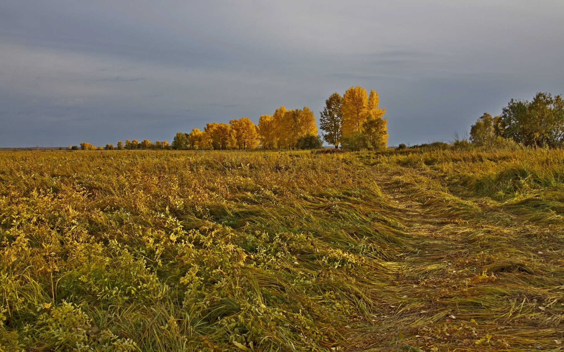 Trees in gold in the autumn time period