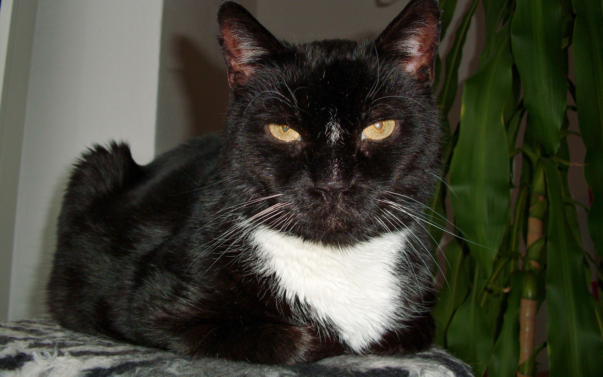 Dark cat looks into the camera