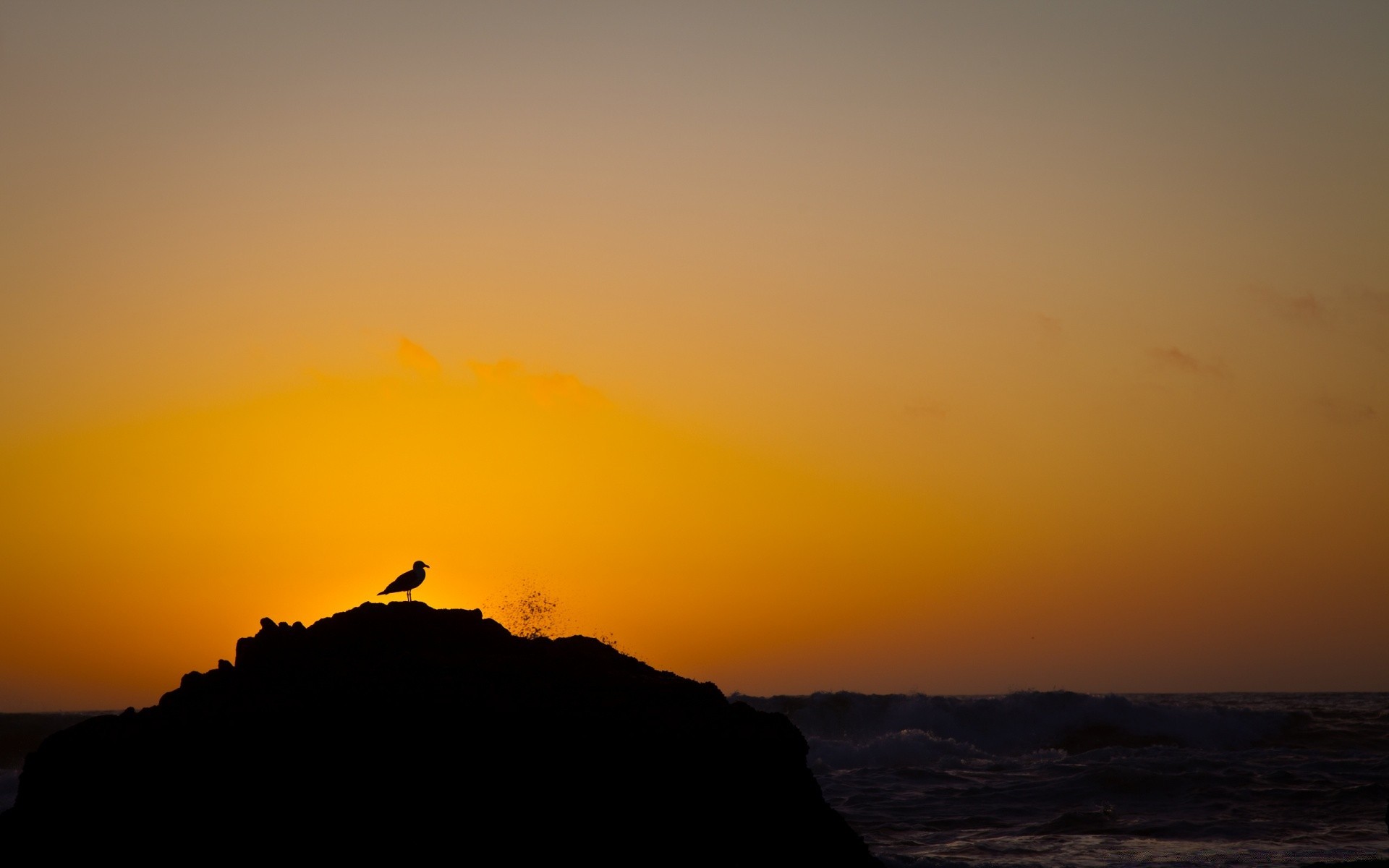A bird on an island. Sunrise at sea