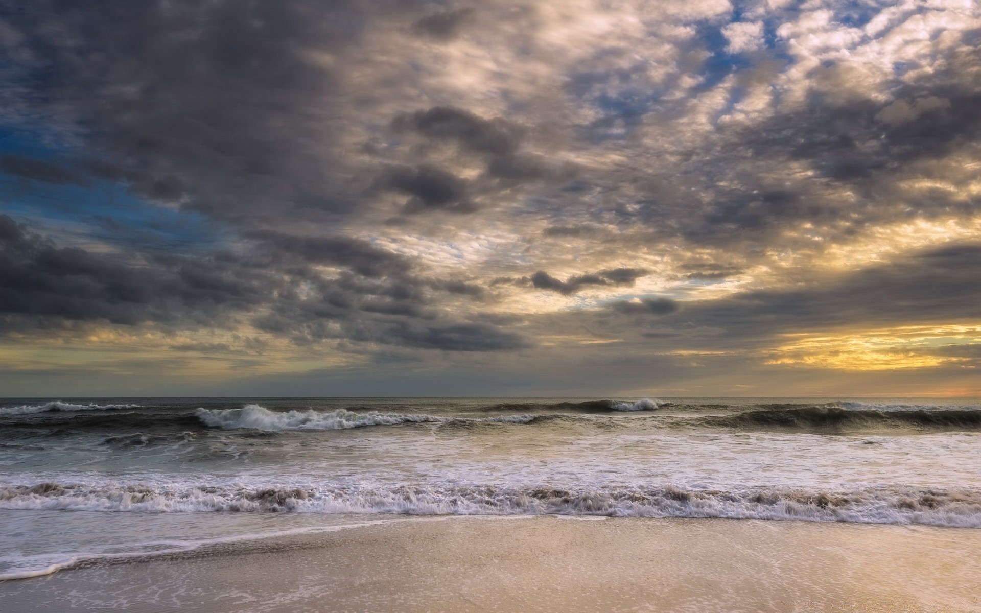 Sandy beach with sea before the storm