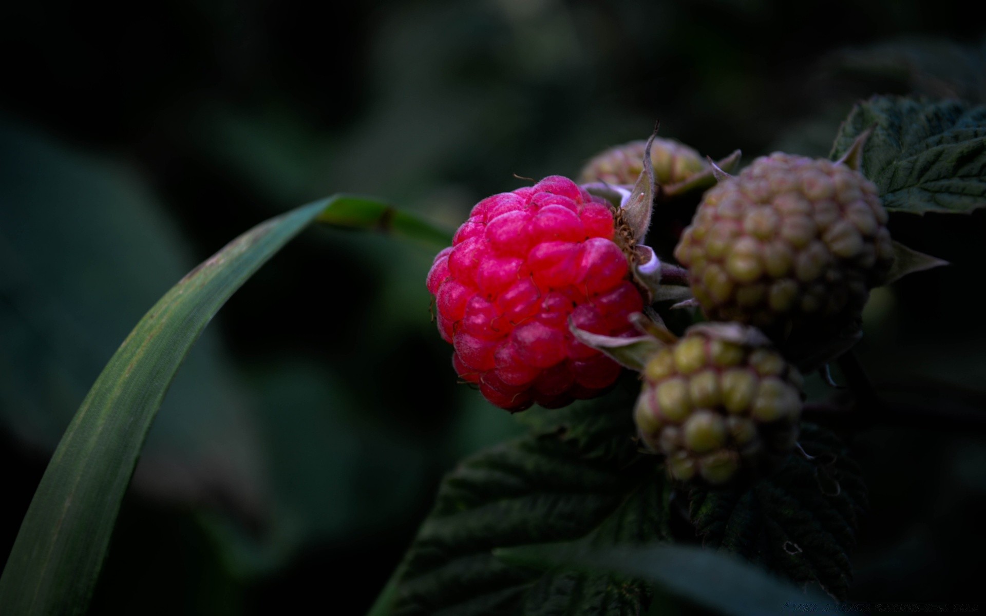 Macro photography of forest raspberries in excellent quality