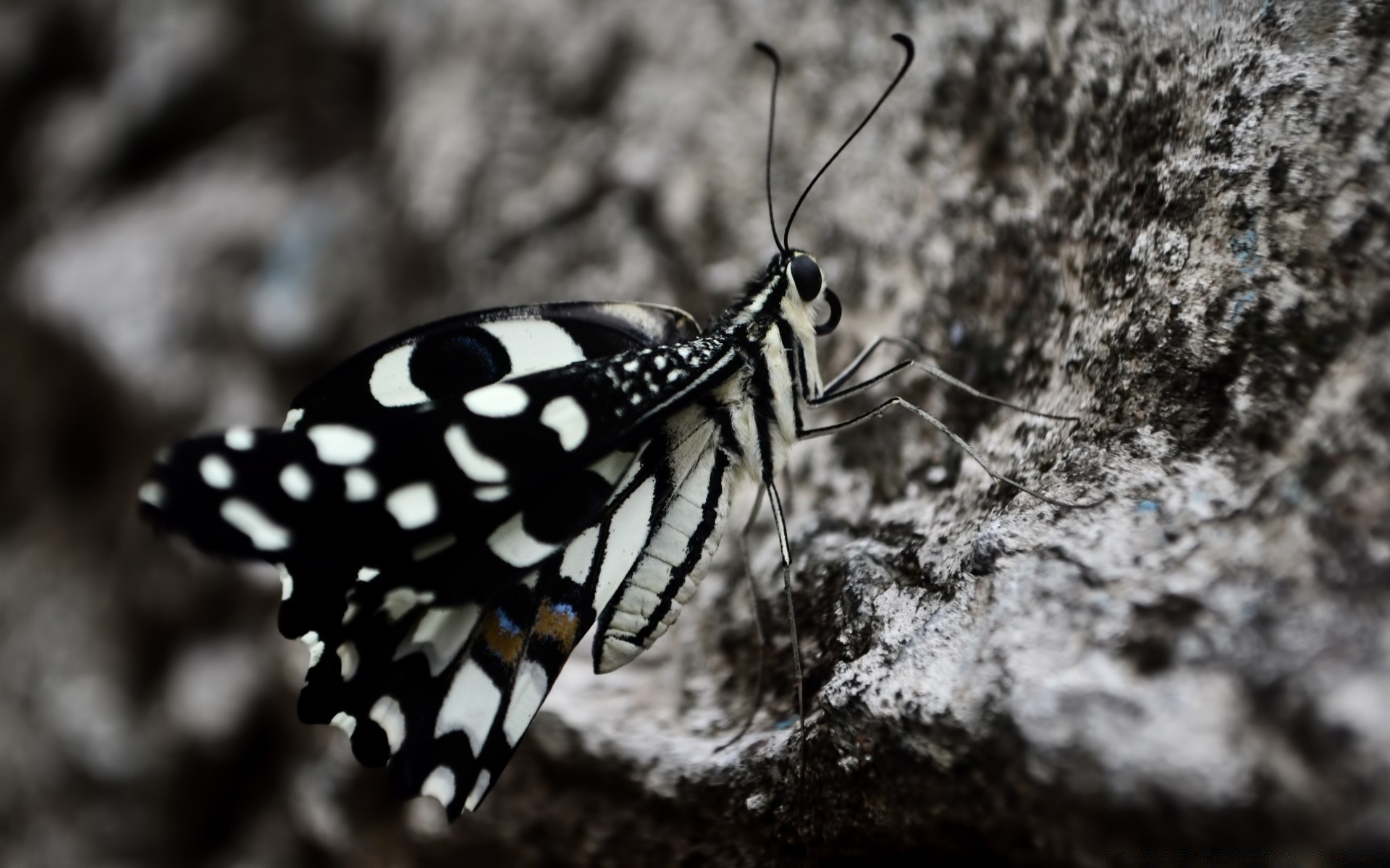 Beautiful black and white butterfly on a stone