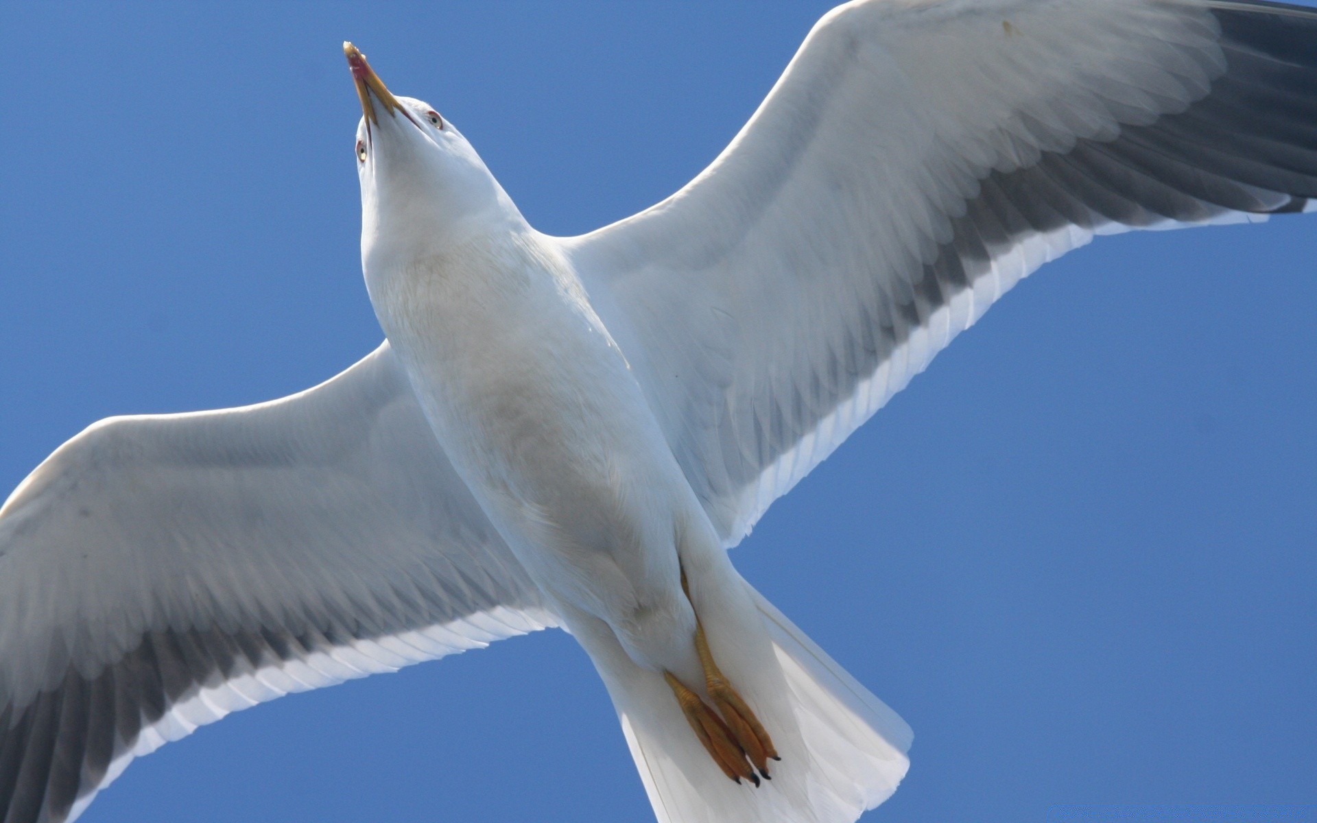 A seagull flying overhead
