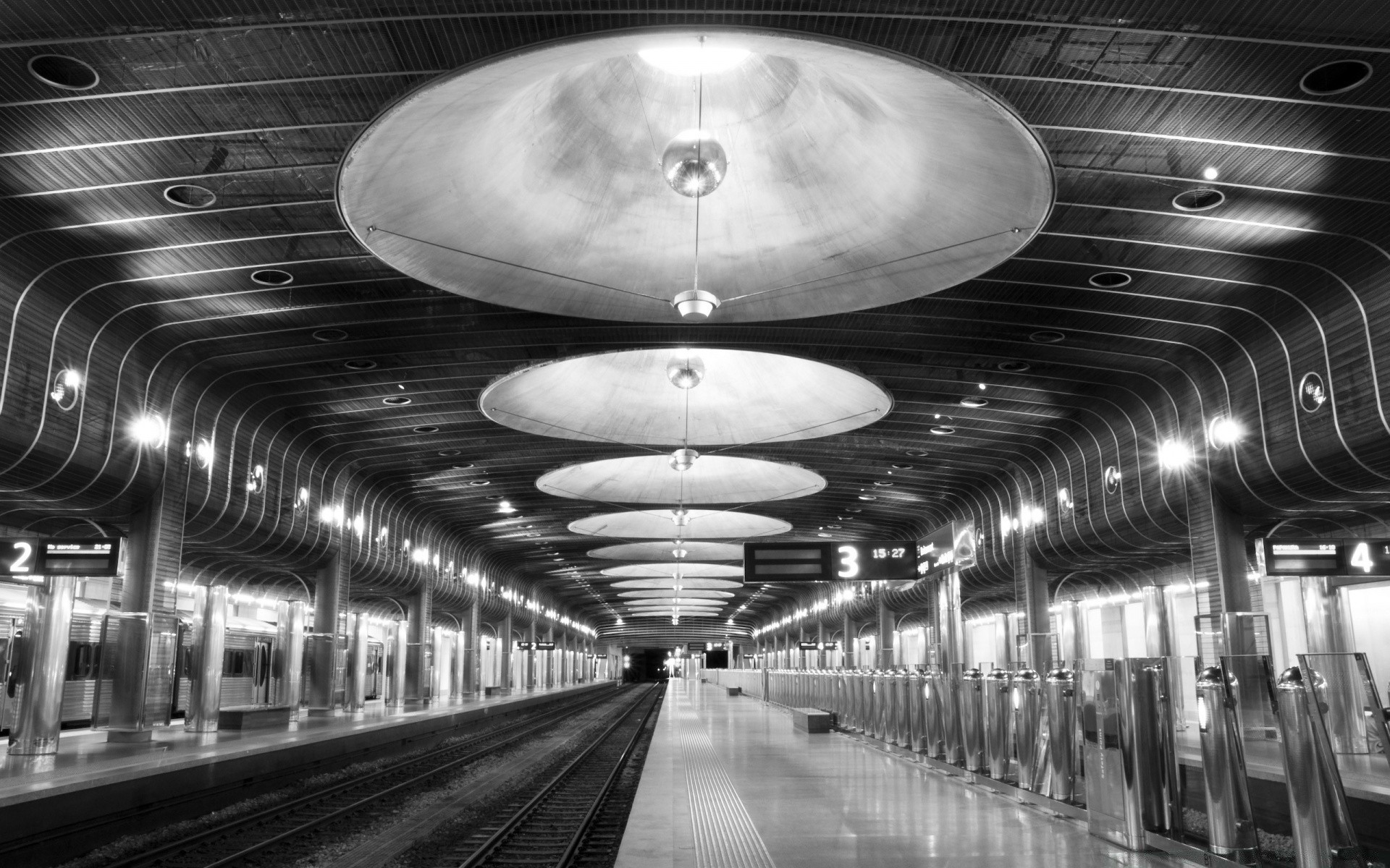Railway station black and white