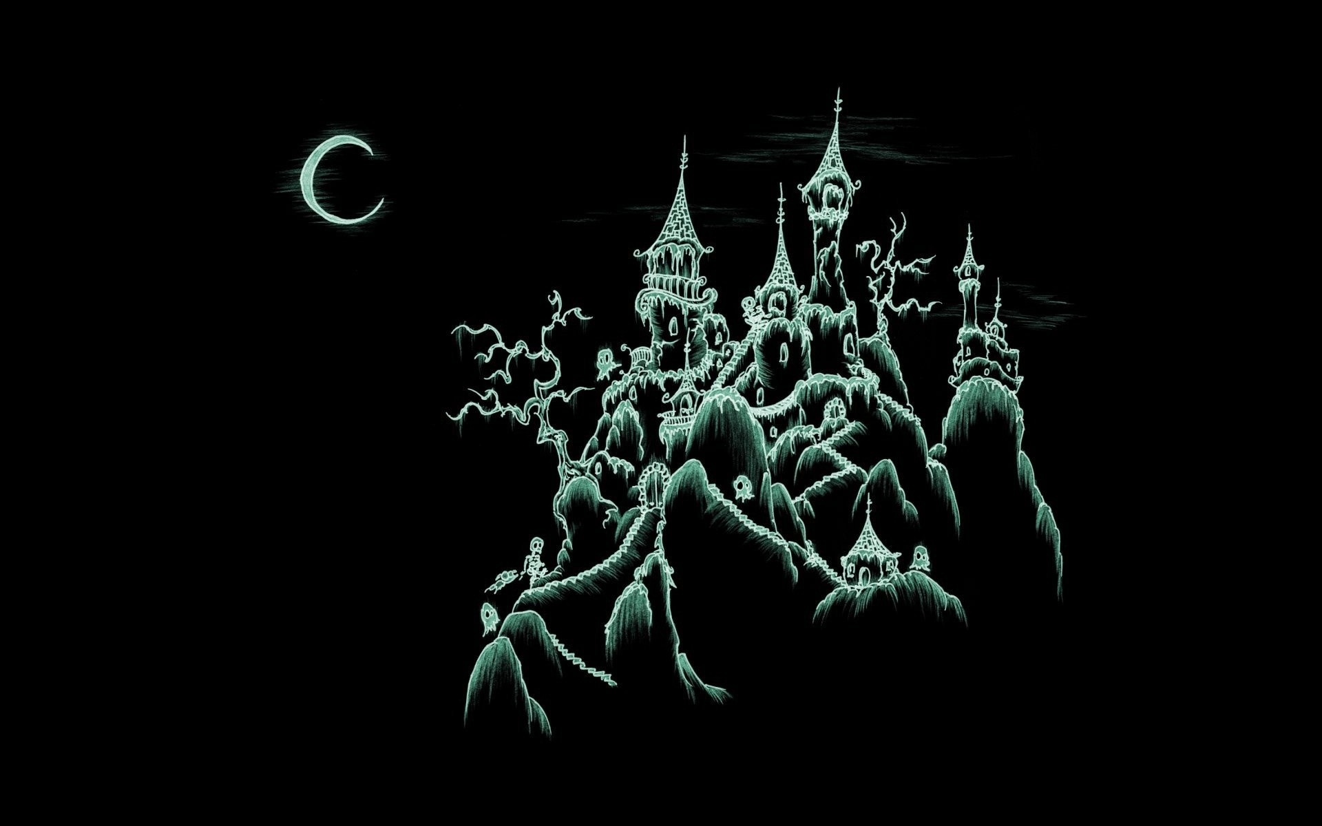 Grey Halloween painting on a black background