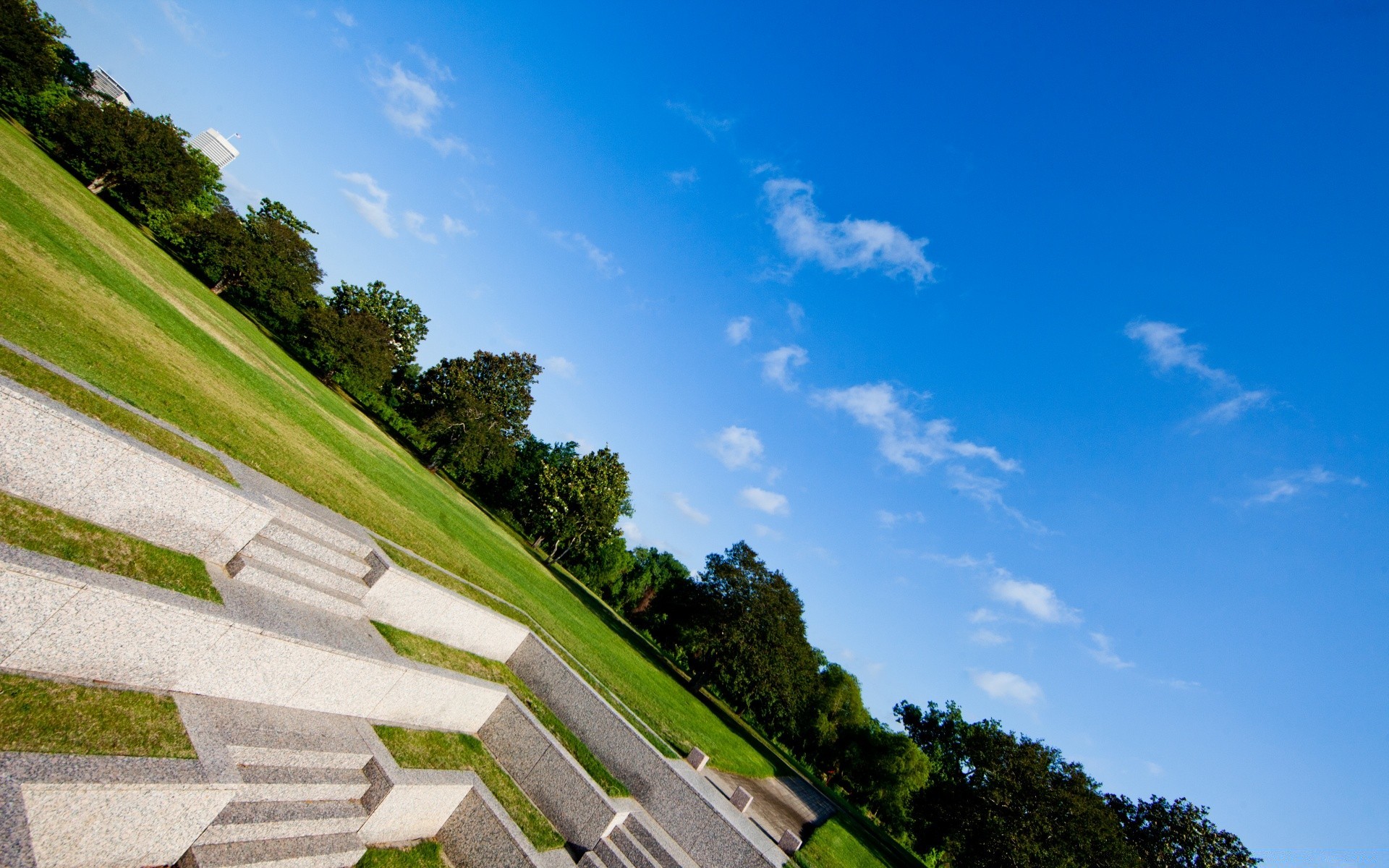 Smoothly mown grass and a ladder of different levels in the ground