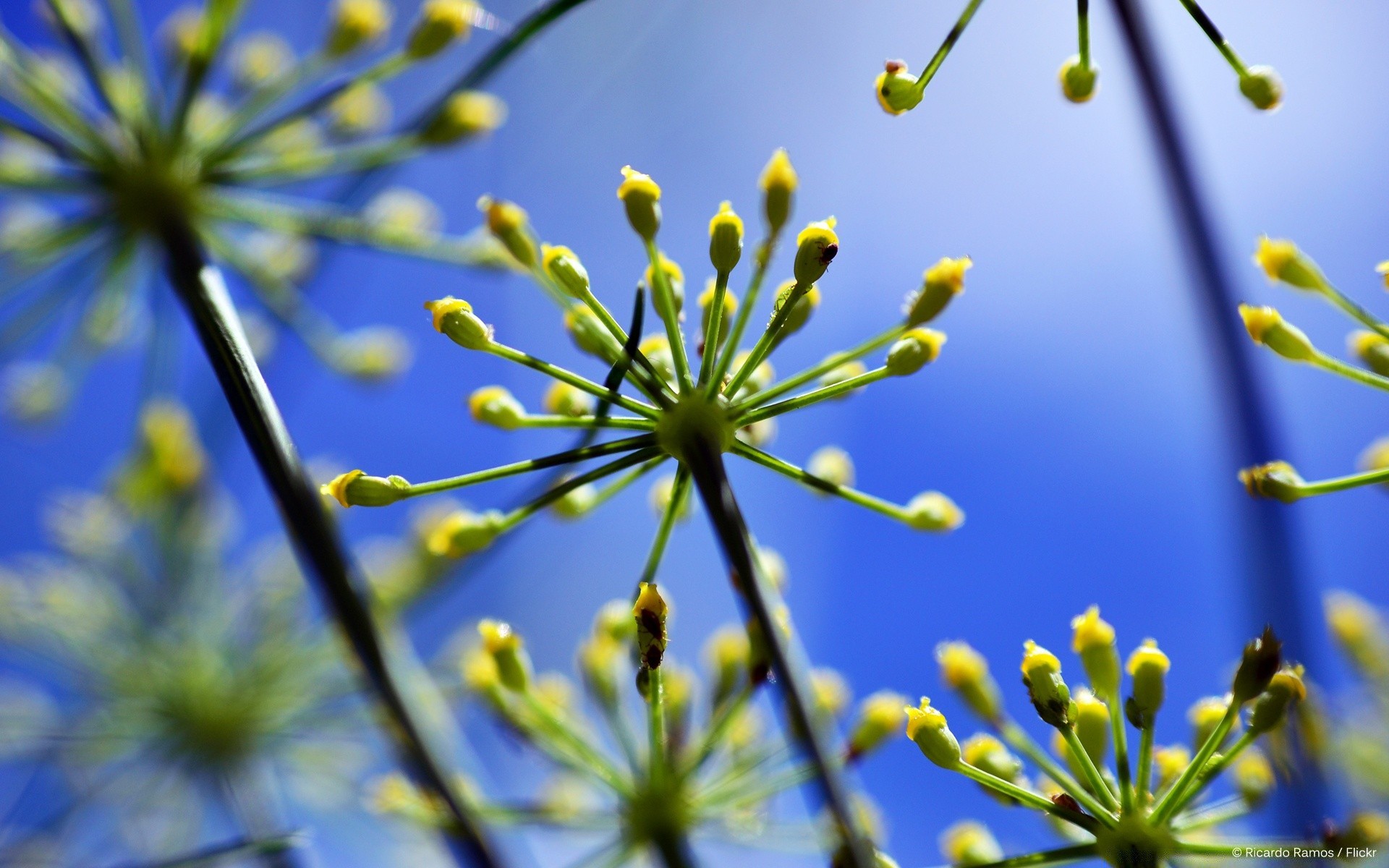 Umbrellas of inflorescences on a blue sky backgroundUmbrellas of inflorescences on a blue sky background