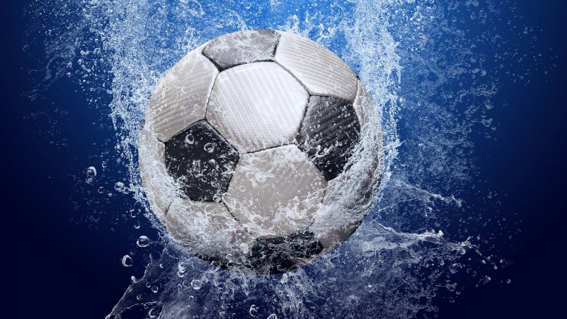 A soccer ball splashed with water