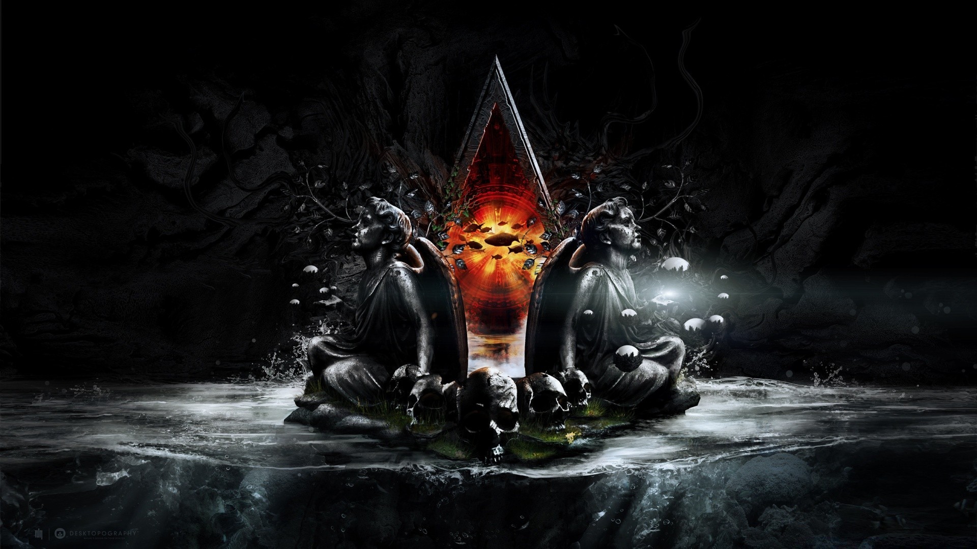 View of the flowing sea surface beyond the edge of the evening horizon, two lonely rocks look at each other
