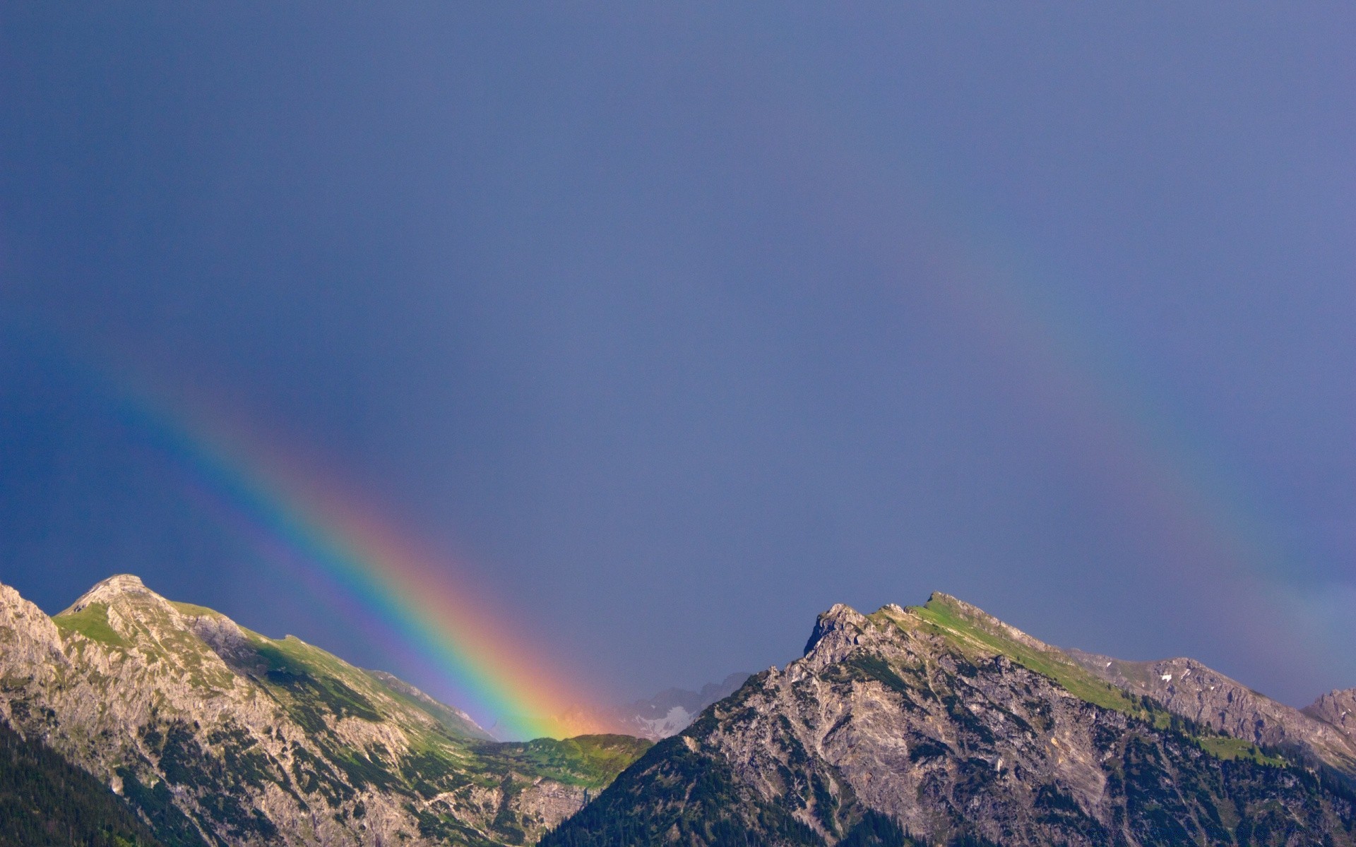Two rainbows on the background of mountains