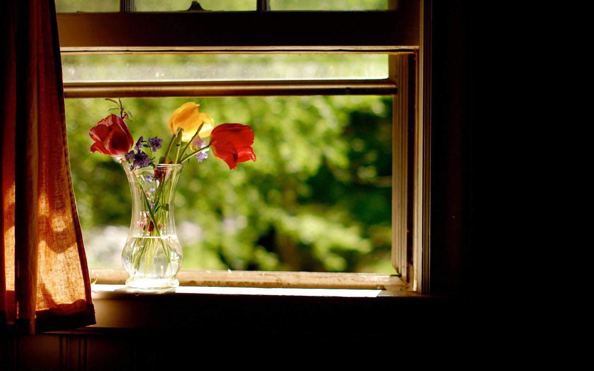 White and two red roses stand on the window