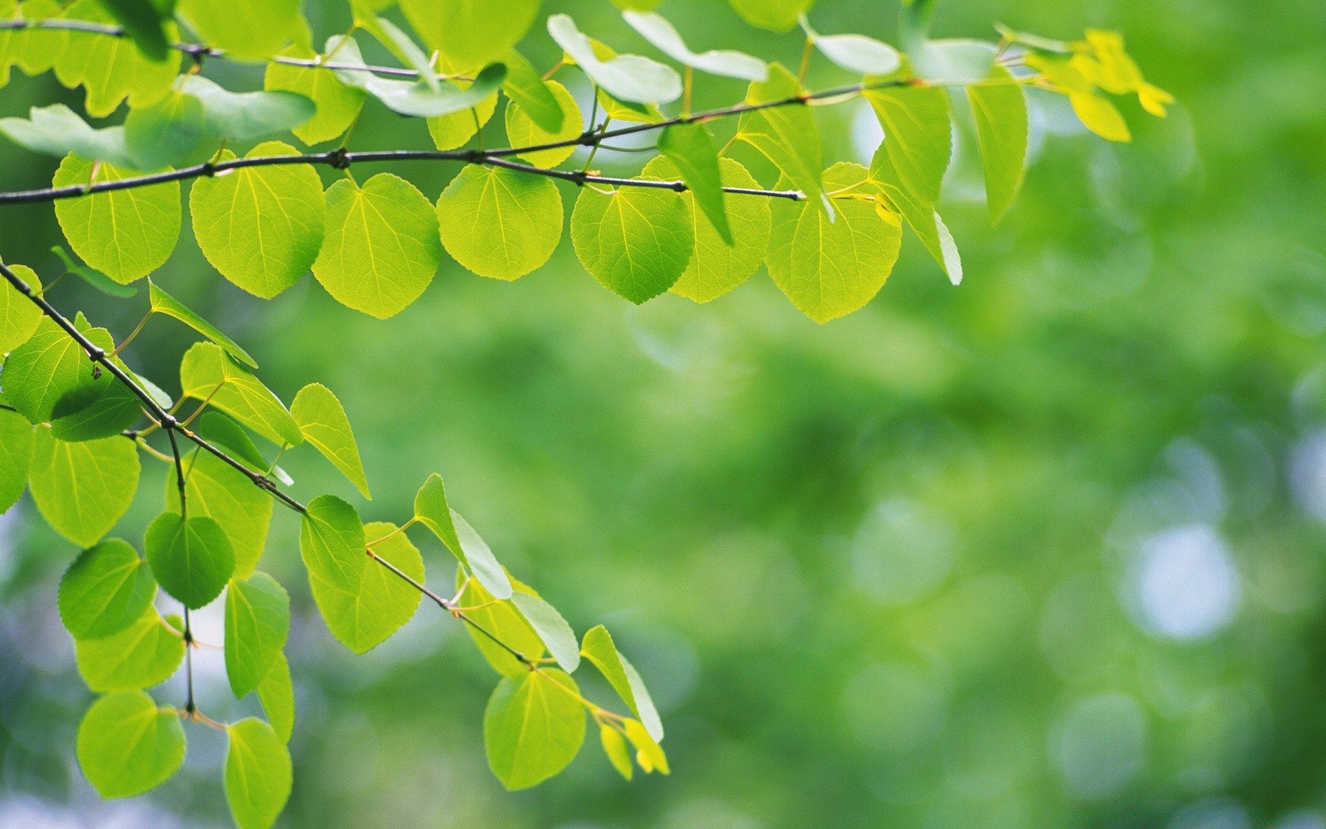 Branches with leaves are visible on a blurred background