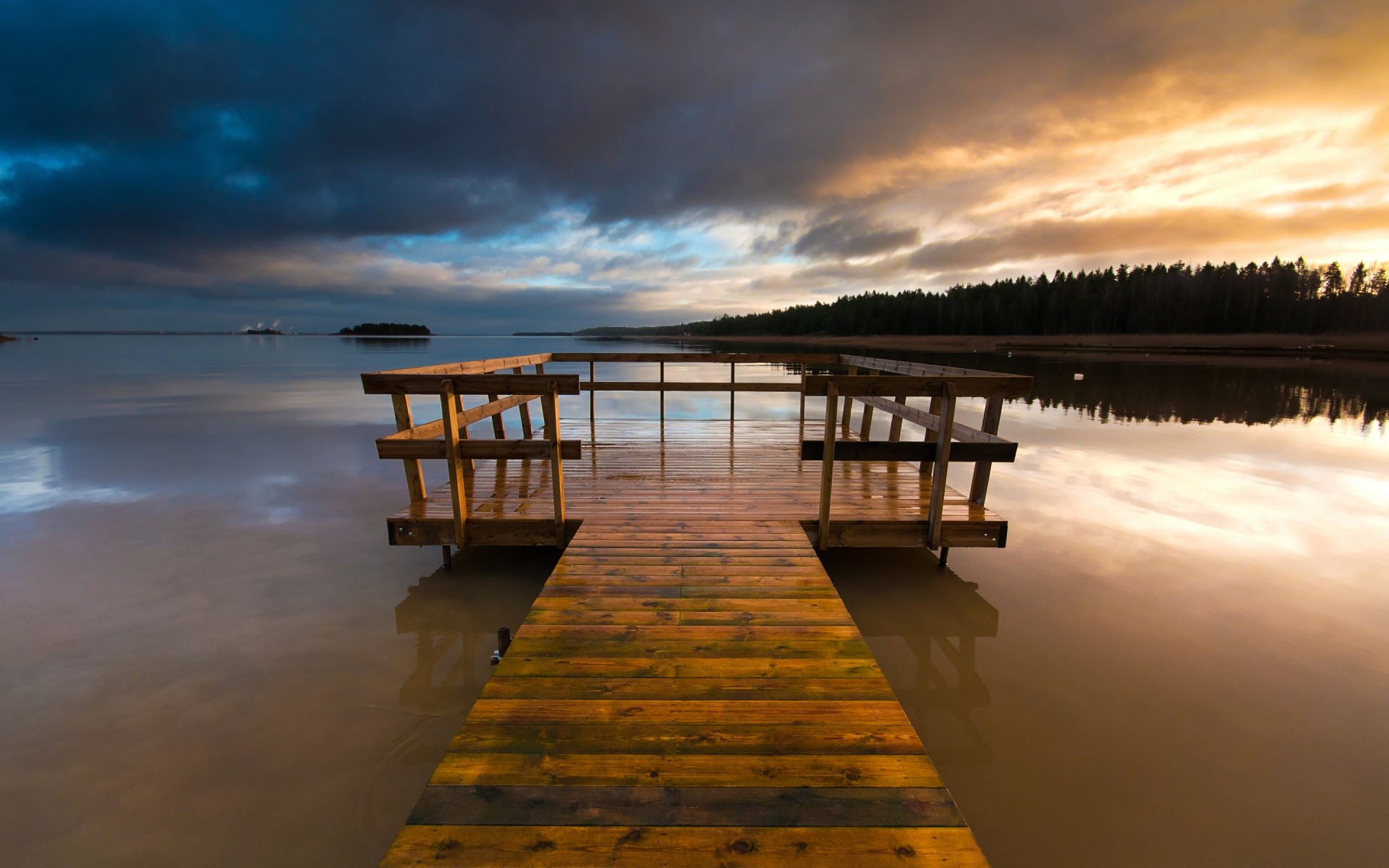 Evening view of the illuminated bridge over the river with clouds in the sky