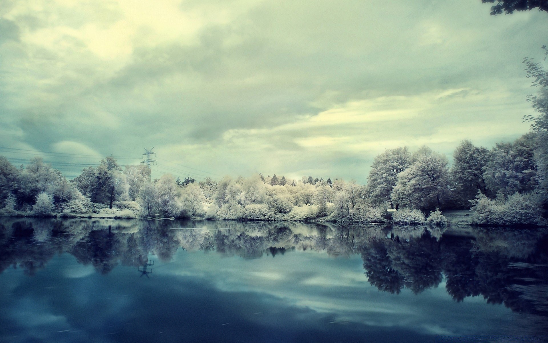 Reflection of trees in the mirror water of the lakeReflection of trees in the mirror water of the lake