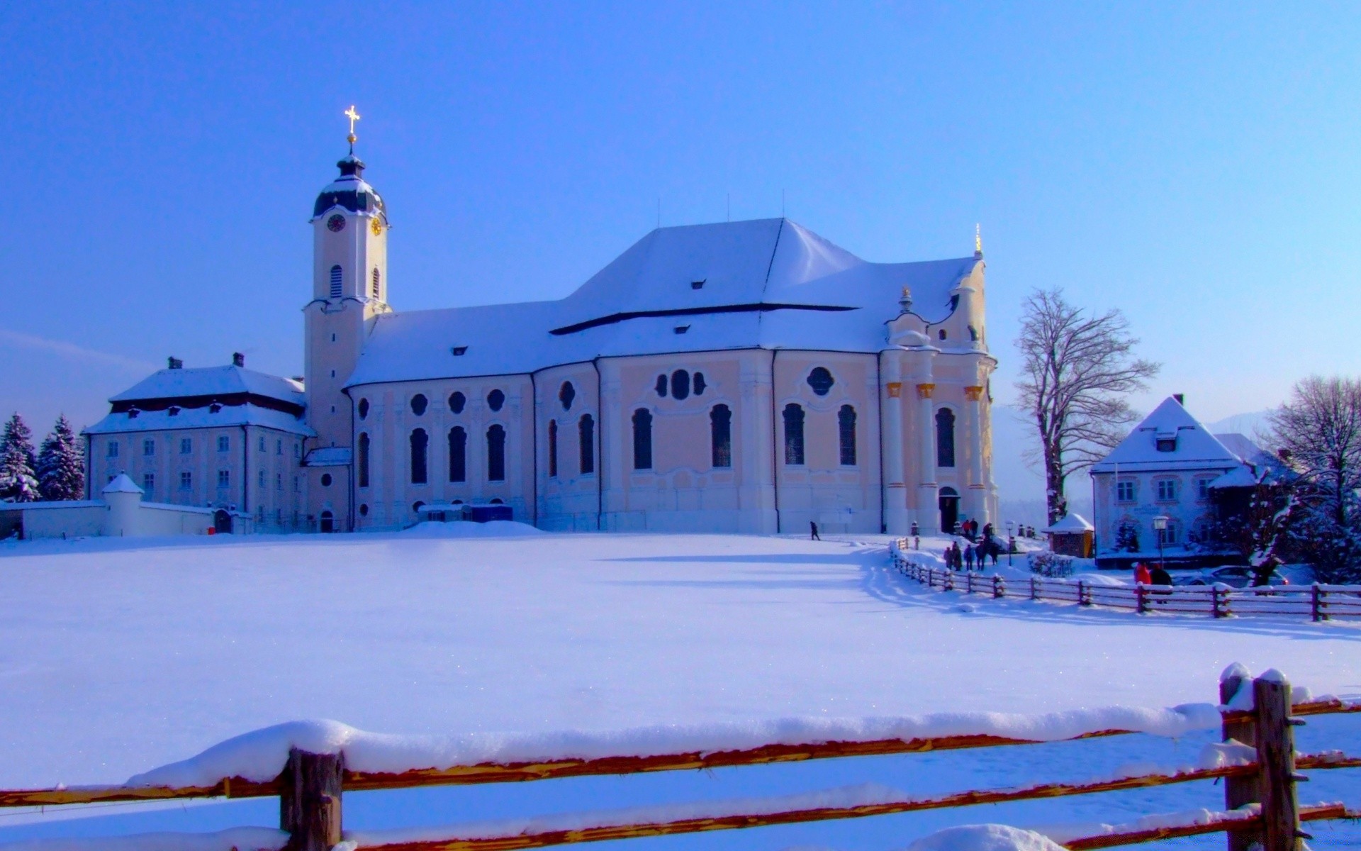 Beautiful building in winter in clear weather