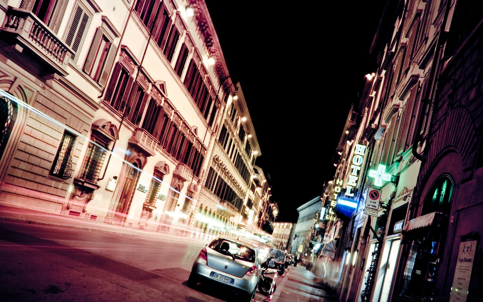 The urban landscape is blurred by fast traffic