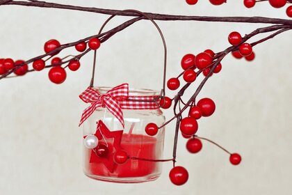 A small red jar with a candle