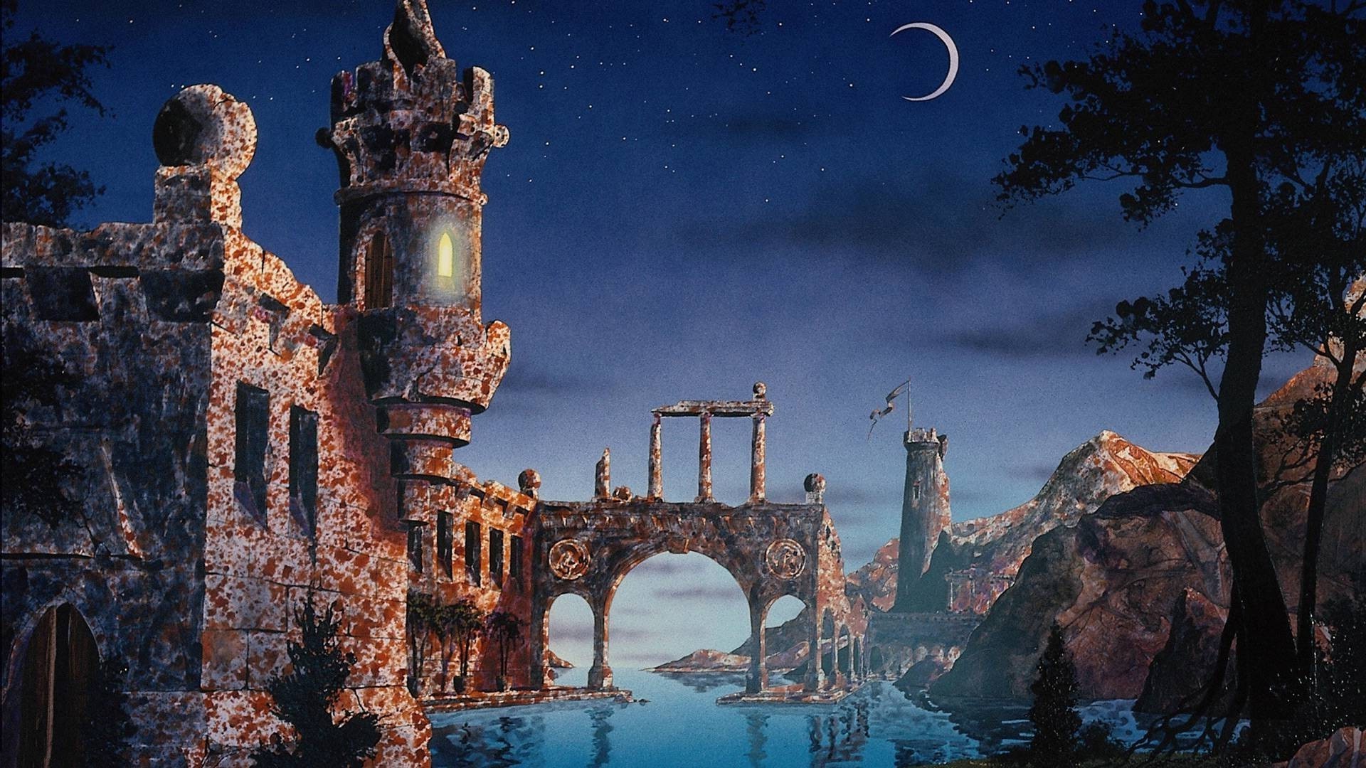 CASTLE AT DAWN AMONG THE WATER SURFACE