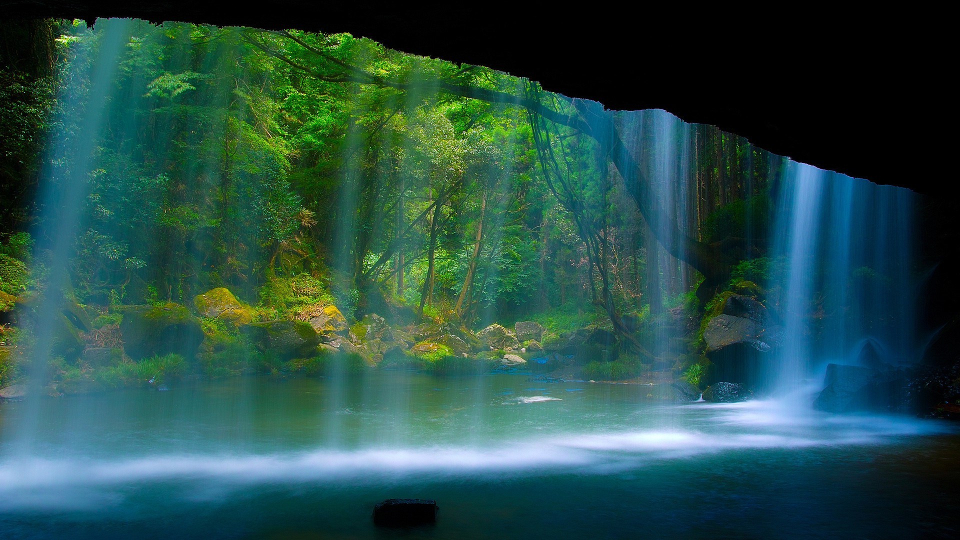 Hidden cave from prying eyes behind a waterfall