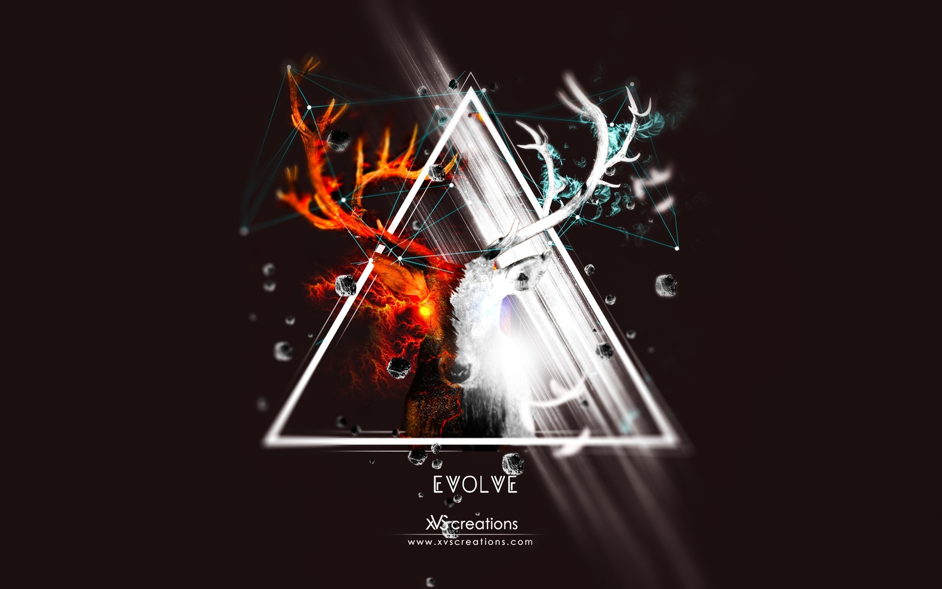 The image of a deer in the form of evil and good in a triangle