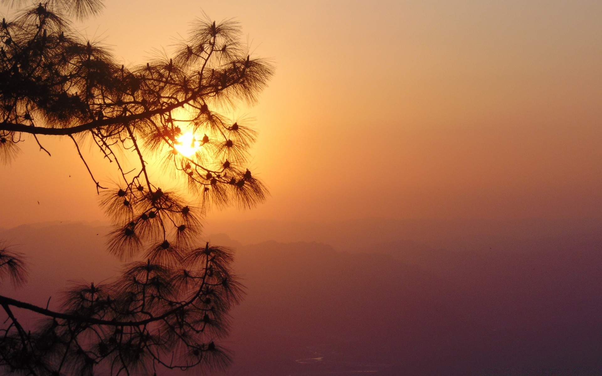 Silhouette of a Christmas tree against the sunset