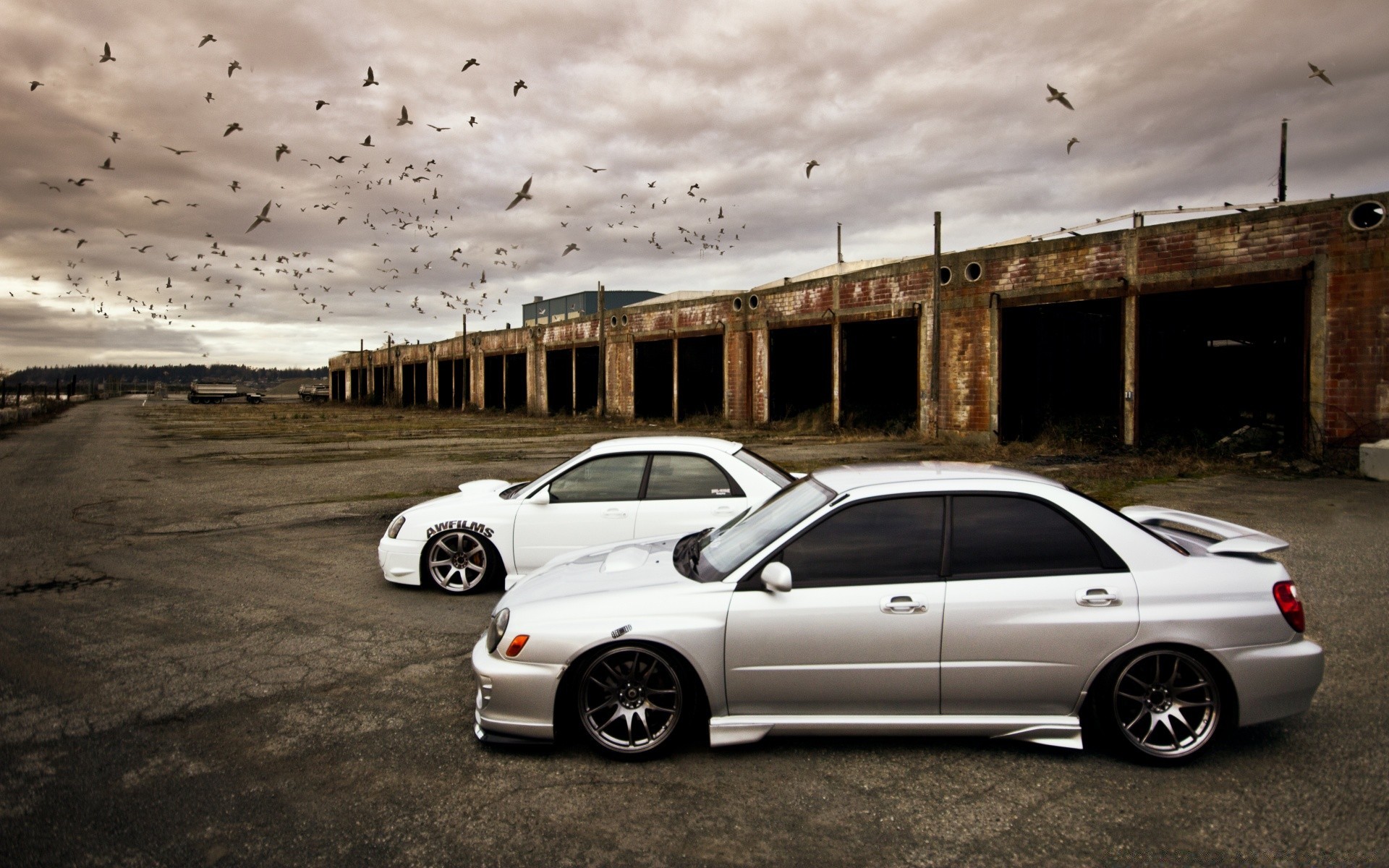 Two cars in a dark city