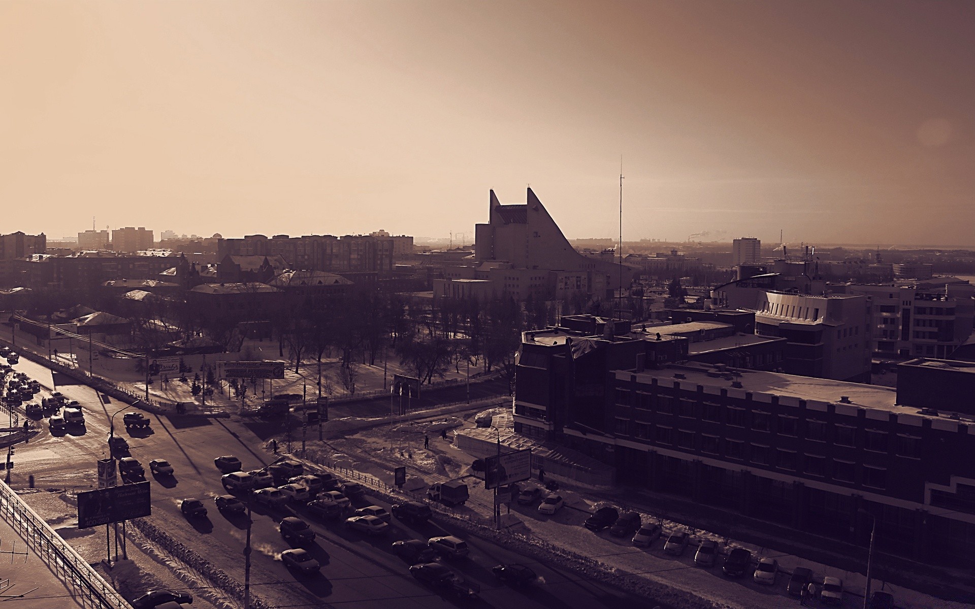 Skyscrapers in an American city have raised their peaks up to the clouds