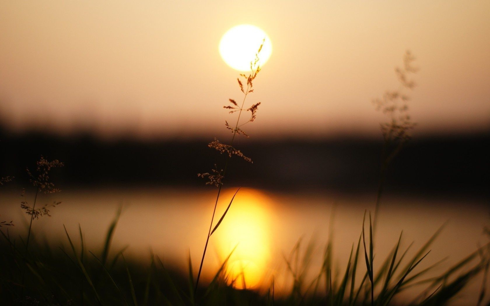 A clearing with red poppies on a sunset backgroundA clearing with red poppies on a sunset background