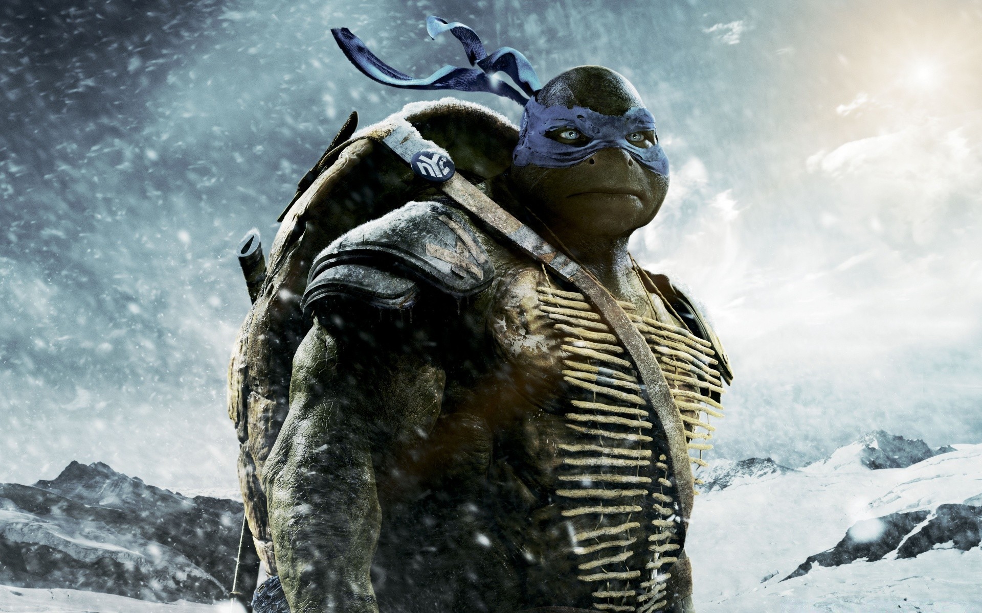 Ninja turtle on the background of snowy mountains