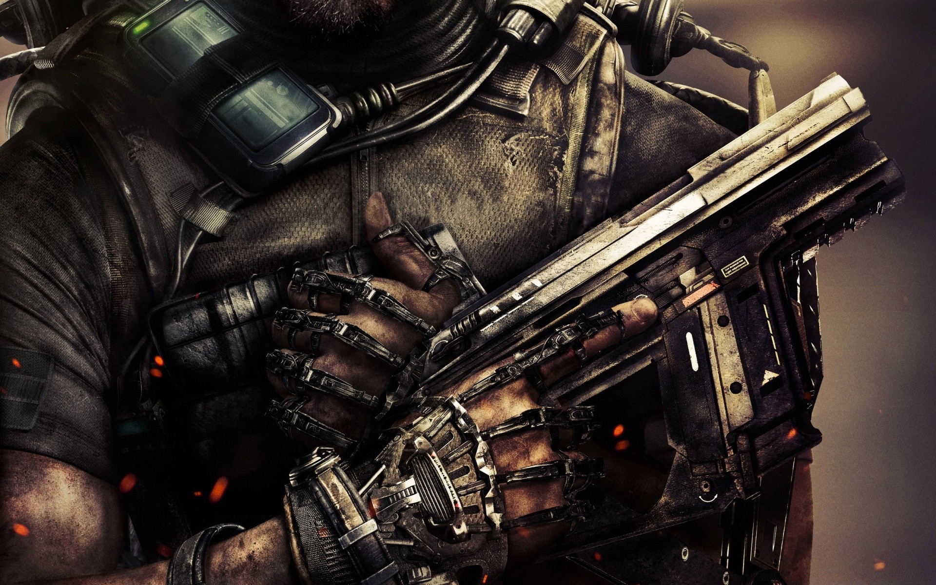 The hero of the game farcry 4 in full combat gear stands on the high bank of the river knee-deep in the grass against the background of the sunset skyThe hero of the game Farcry 4 in full combat gear stands on the high bank of the river knee-deep in the grass against the background of the sunset sky