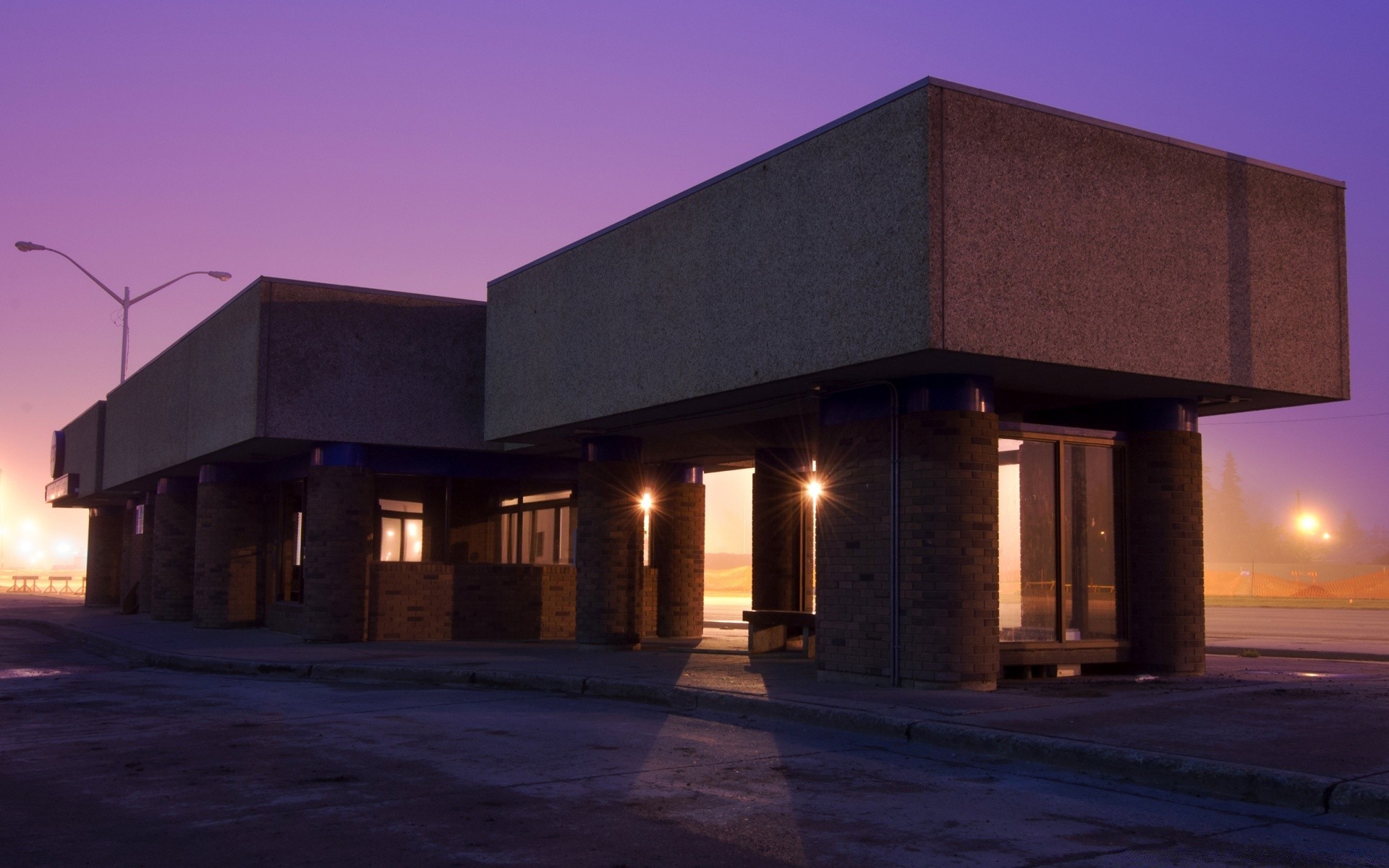 A house with strange architecture against a purple sky