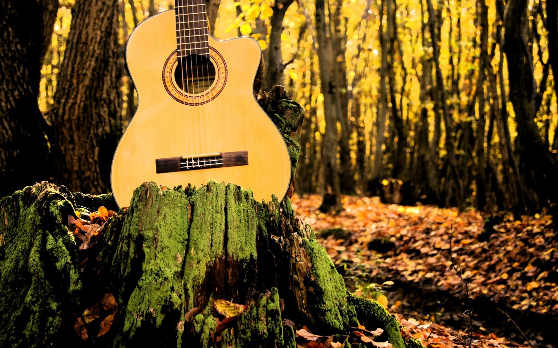 Guitar in a yellow park. Nature