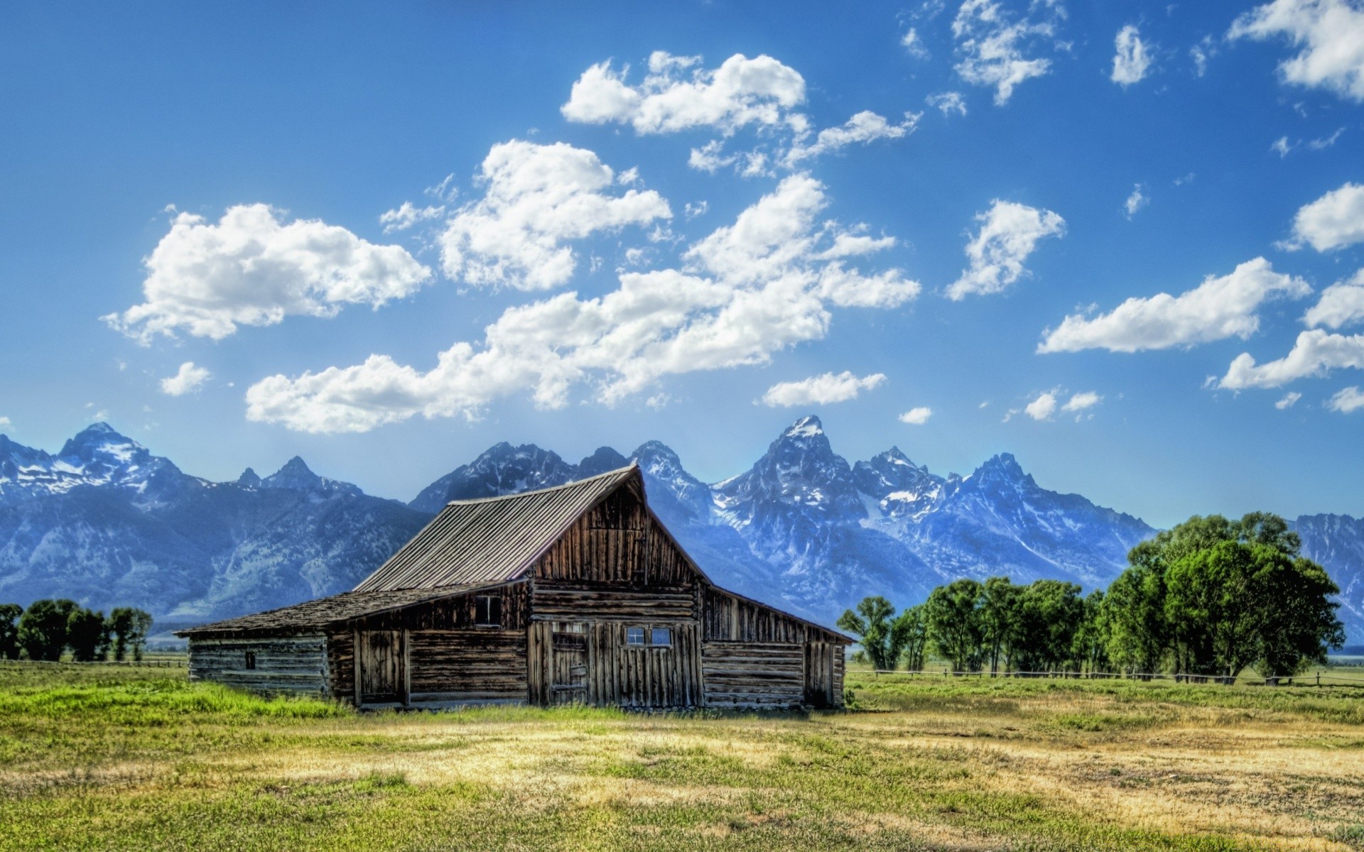 Wooden hut on the background of mountains