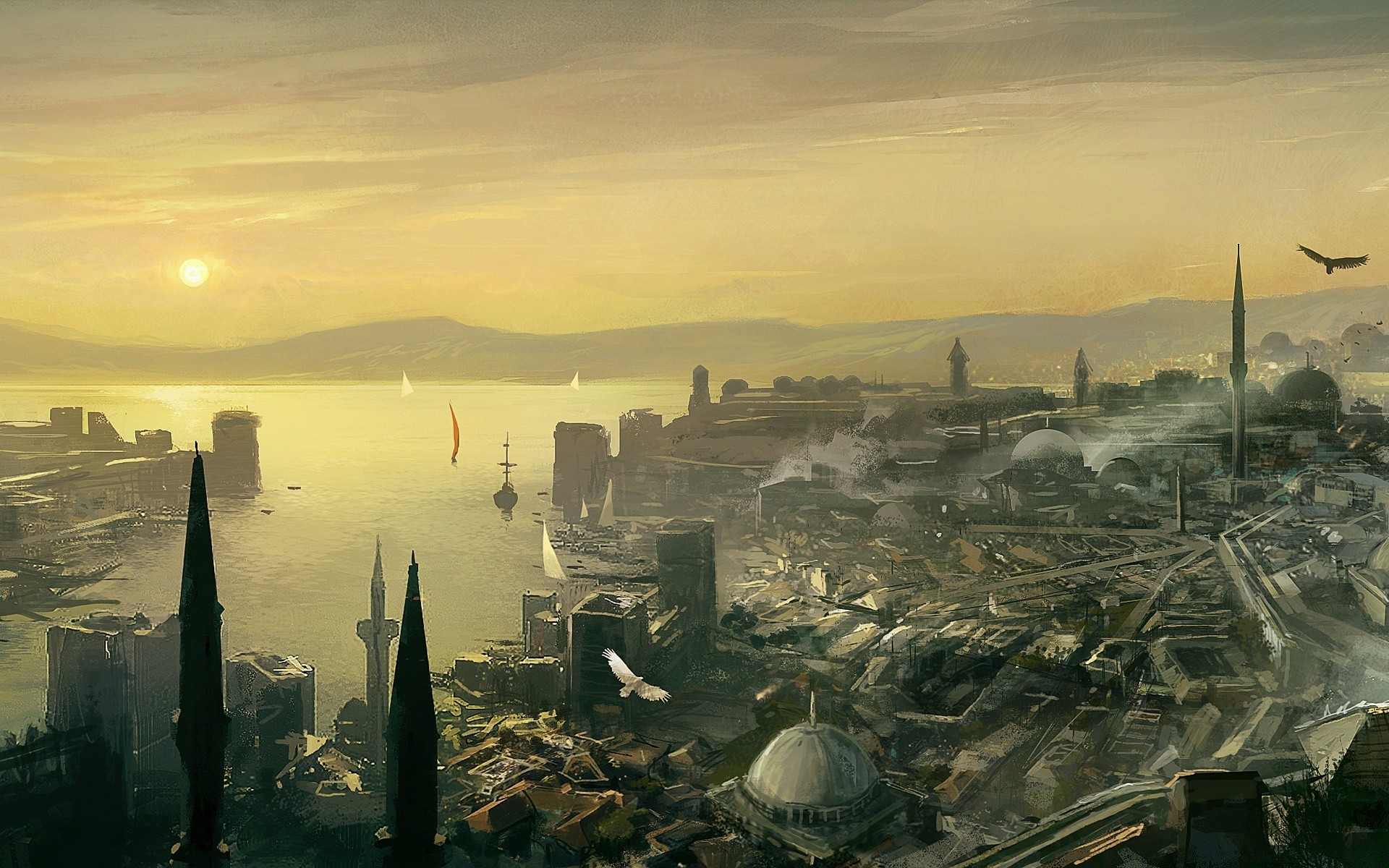 Dawn in the city by the sea