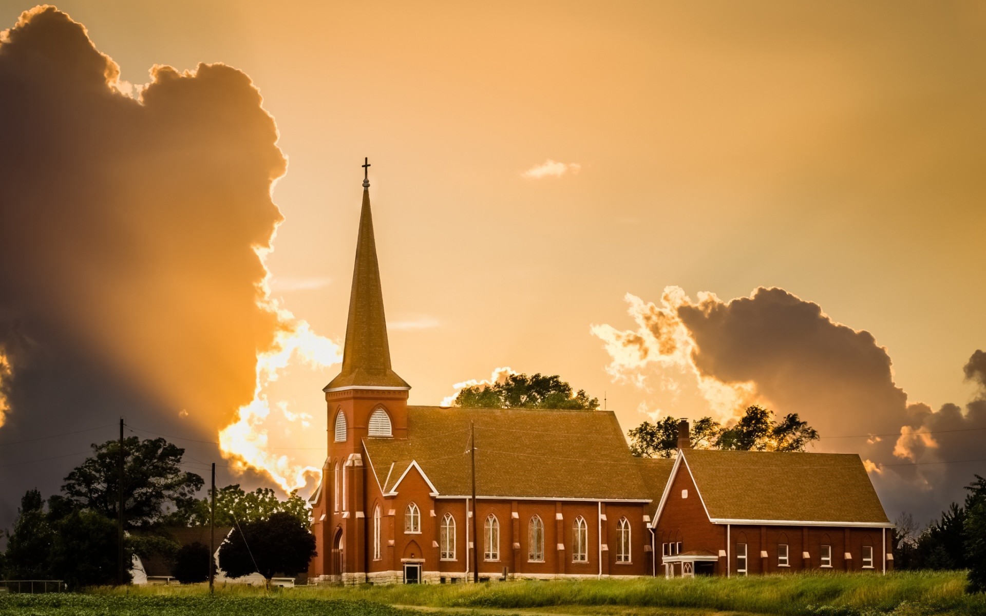 The sunset rays of the sun are visible from behind the buildingThe sunset rays of the sun are visible from behind the building