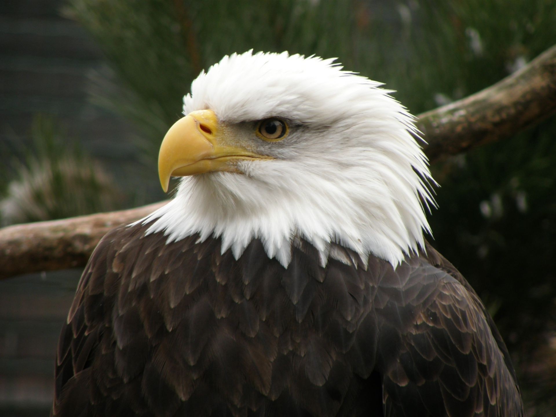 A proud eagle on the background of a branch