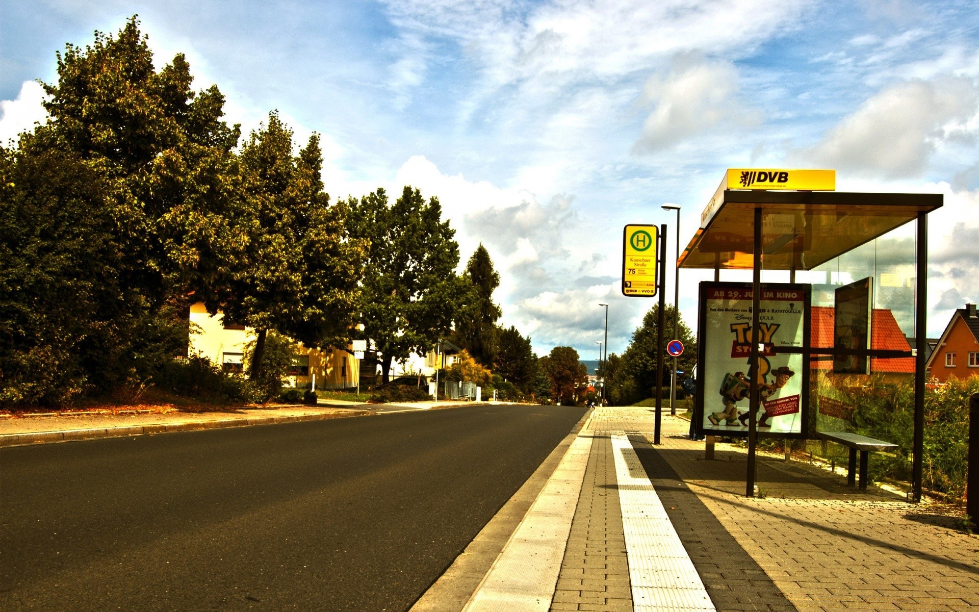 Deserted bus stop near the forest
