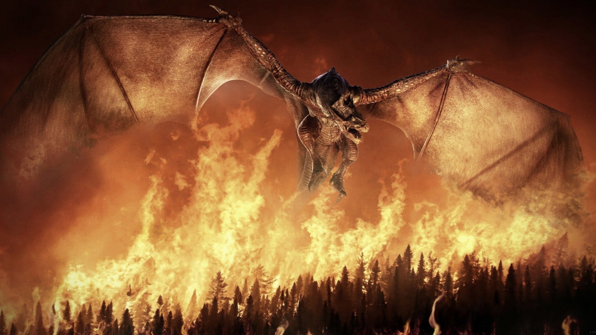A beautiful drawing of a fantasy dragon and a sorceress in a cave