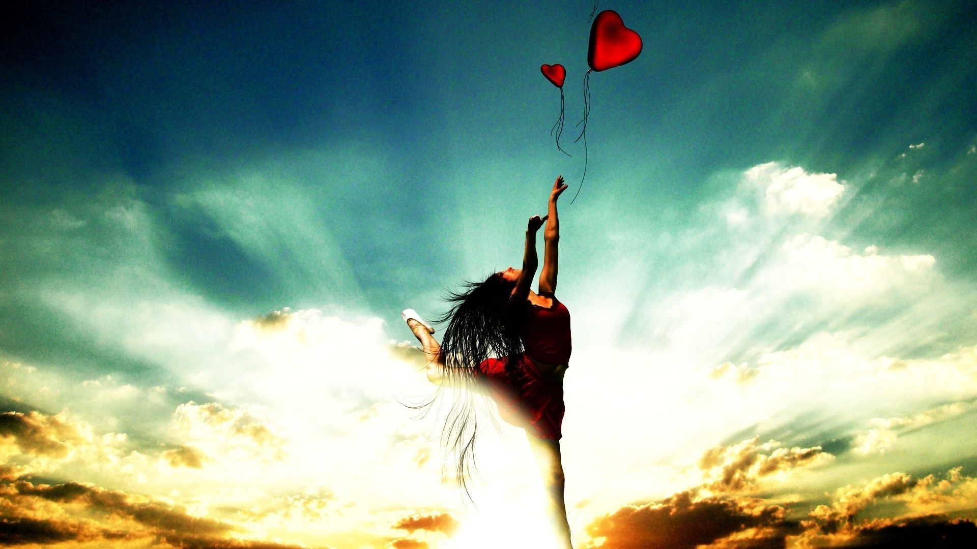 A girl in a bright dress on a carpet of orange leaves in the forest