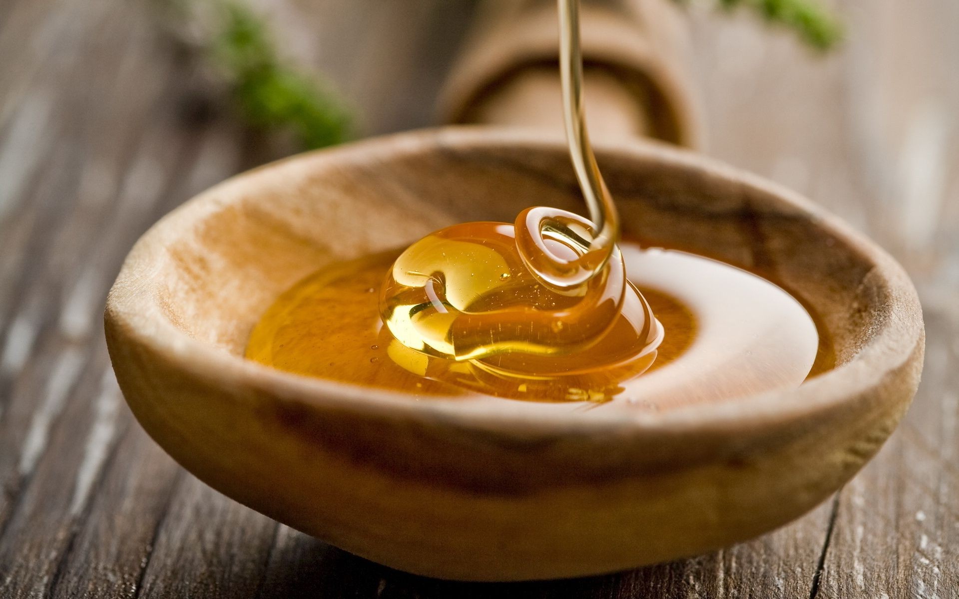 A wooden spoon filled with honey