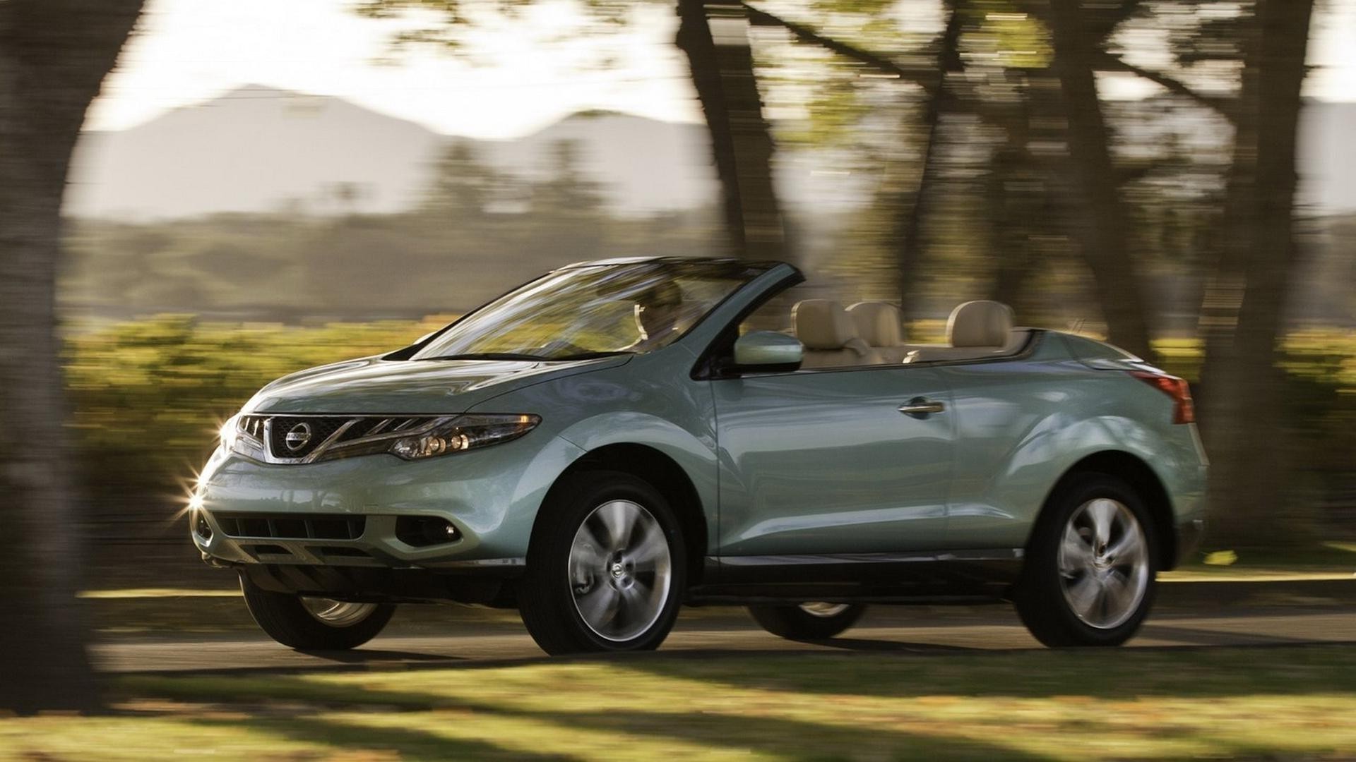 The car is driving on the highway against the background of hills and the sky in the clouds