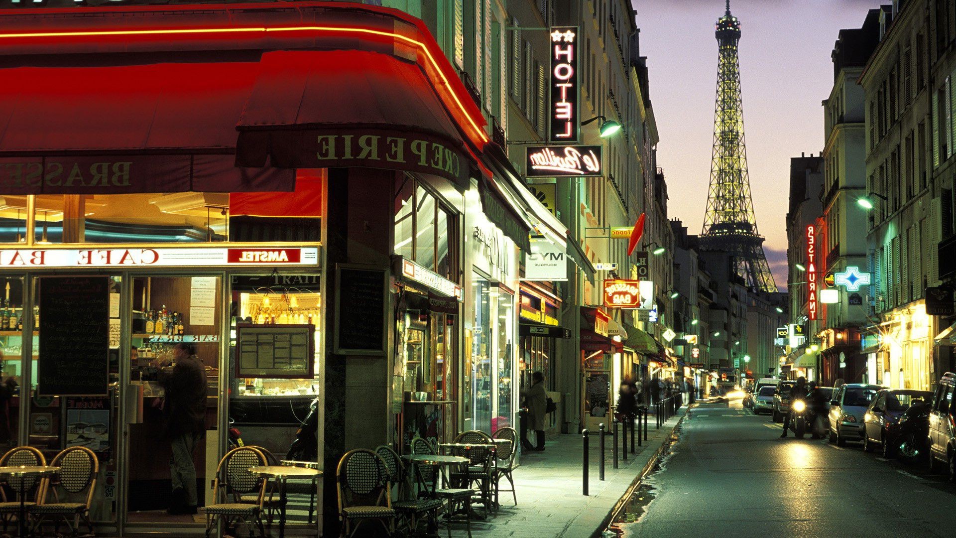 Evening street cafe bar cars tower TV tower