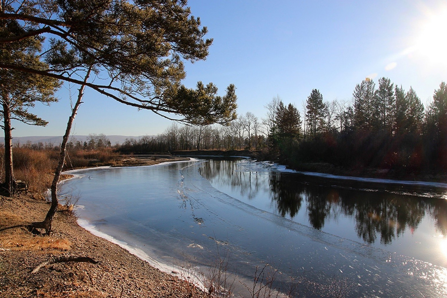 CABLE BRIDGE OVER THE RIVER IN THE MORNING