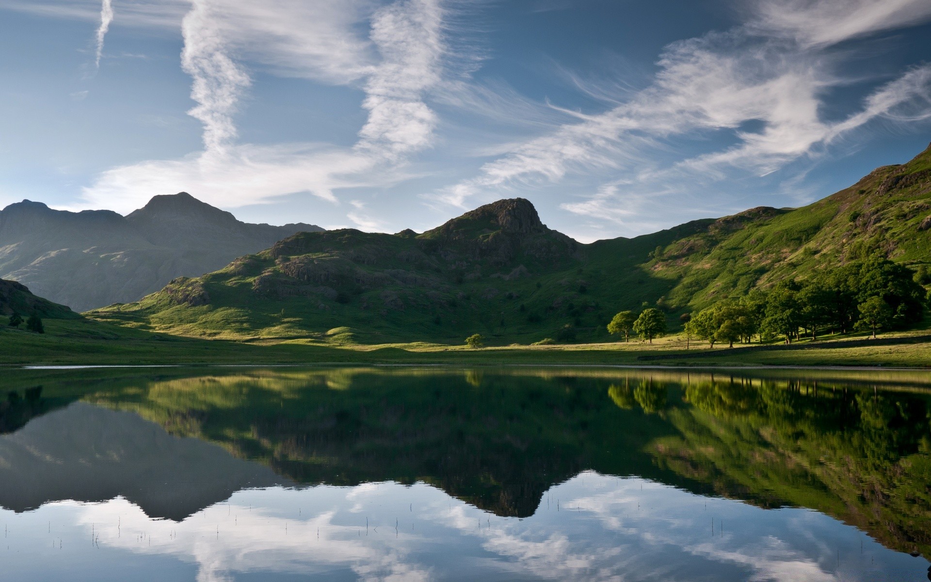A beautiful sunset over a lake in the middle of the taiga, in the middle of which there is a small island
