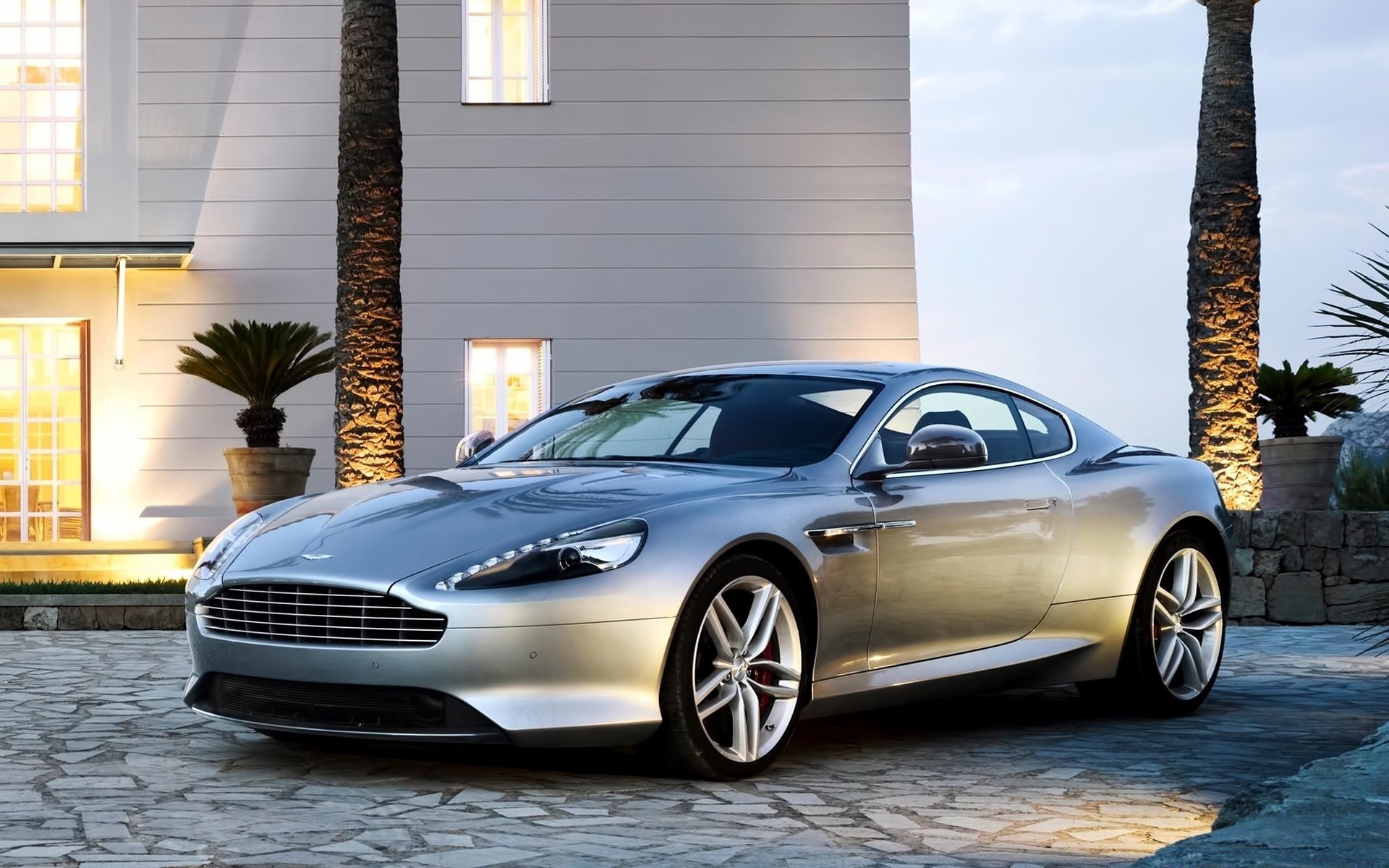 Mazda with chrome wheels on paving stones on the background of the mansion