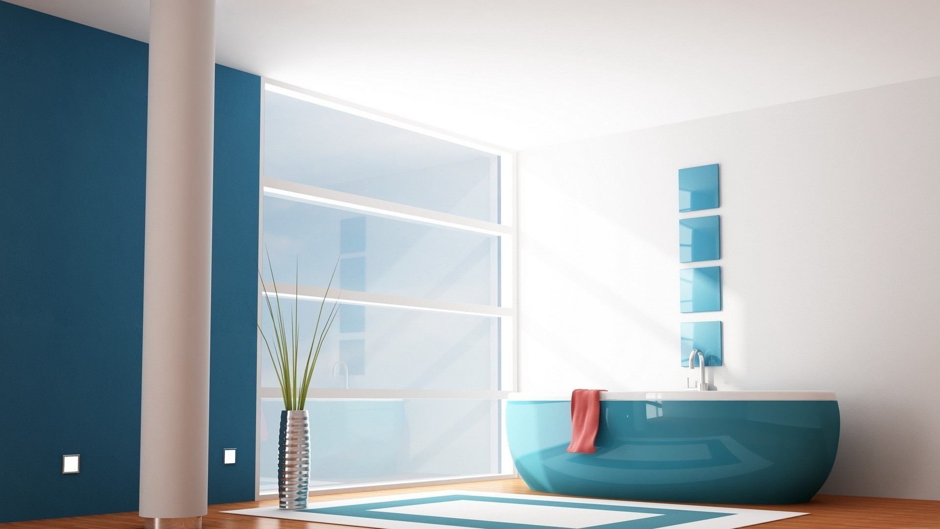 A white sofa and a night light on a table against a background of brown tiles and a glossy floor