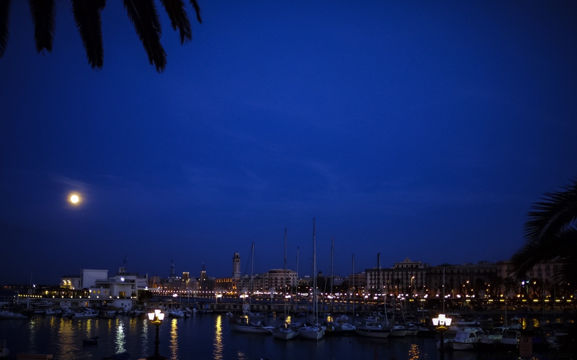 The city is crowded, the architecture is good, the light of the lights and the blue of the water